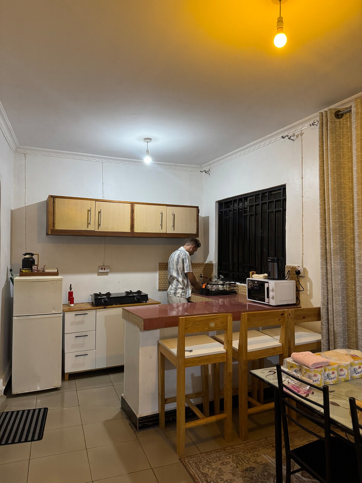 This cozy apartment is designed to feel like a true home, soft furnishings that invite you to relax, The open living area flows seamlessly into a compact modern kitchen, perfect for both quick meals and leisurely cooking, while the bedroom offers a snug retreat with plush bedding and gentle lighting for restful nights. Every corner is crafted to create comfort and warmth, making it the most inviting and homely apartment in Mwanza—a peaceful sanctuary where you can unwind and feel at ease.