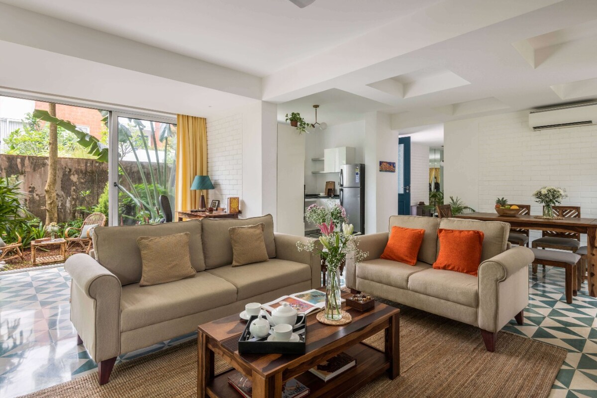 Certificado por Goa Tourism Apartamento con aire acondicionado de 950 pies cuadrados: 2 dormitorios, 2 baños, TV/sala de estar, cocina abierta; lavandería + Espacio de 500 pies cuadrados sin aire acondicionado: comedor para 4 personas; solárium; patio sombreado; balcón al aire libre. Internet de 300 mbps; 4-5 horas de energía de respaldo; Smart TV de 50"; libros; juegos de mesa; estación de trabajo y aparcamiento cubierto Ubicado en Porvorim: 15 minutos de Panaji/Mapusa; 25 minutos de Calangute/Baga; 30 minutos de Anjuna/Vagator; 45-60 minutos Ashvem/Mandrem/Arambol; 60-75 minutos en las playas del sur de Goa; 120 minutos de Palolem