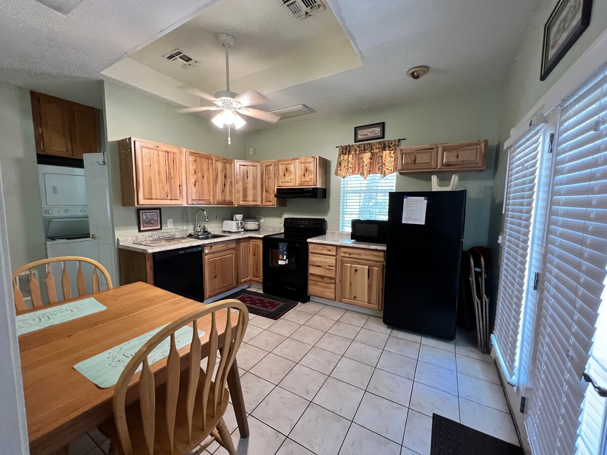 Acogedora casa de campo privada con cocina completa, baño, lavadora/secadora en la unidad, sala de estar, vallada en el porche trasero y parrilla. La casa de campo se encuentra en la ciudad de Lufkin y cerca de tiendas, restaurantes, instalaciones médicas e iglesias. Excelente ubicación lo suficientemente cerca de todo. Esta es una casa de huéspedes separada en la misma propiedad que nuestra casa. Tienes total privacidad. Si necesitas fechas que están bloqueadas o estancias más cortas, por favor, pregunta. Bloqueamos fechas para huéspedes habituales, familiares y amigos.