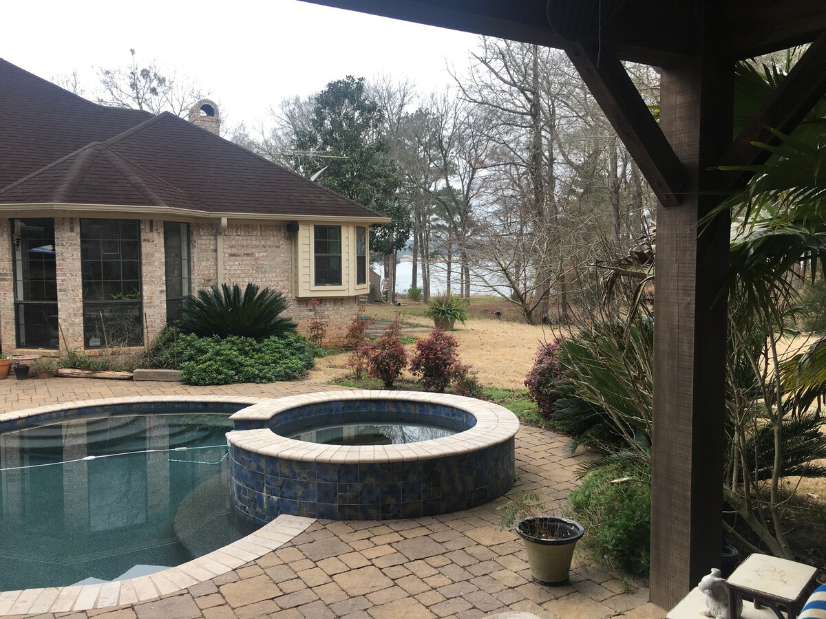 Located just west of historic Nacogdoches on Lake Nacogdoches. The comfortable space for two sits behind our main house surrounded by pool, hot tub, fire pit and more. Entry is by key code for a stress free stay. Owners are usually a text or phone call away for assistance. The lake which attracts anglers year-round is a 2 minute walk from you. There you'll find two kayaks used for fishing or exploring . At night, you'll enjoy star gazing around the fire pit, as you're miles from town.