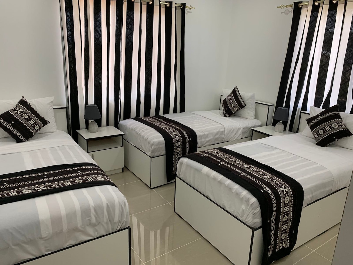 The new apartment is near Nadi International Airport, 8-minute drive (2.9 km) from the airport. Starlink WIFI The two bedrooms are both 1.8m King beds, mattresses with latex and individual springs for a comfortable sleep experience The kitchen has a full range of cooking utensils, you can enjoy a wonderful meal with your family Living room have a 65-inch smart TV with Netflix,YouTube,Walesi cable TV. We'll provide you with the best service. Looking forward to seeing you