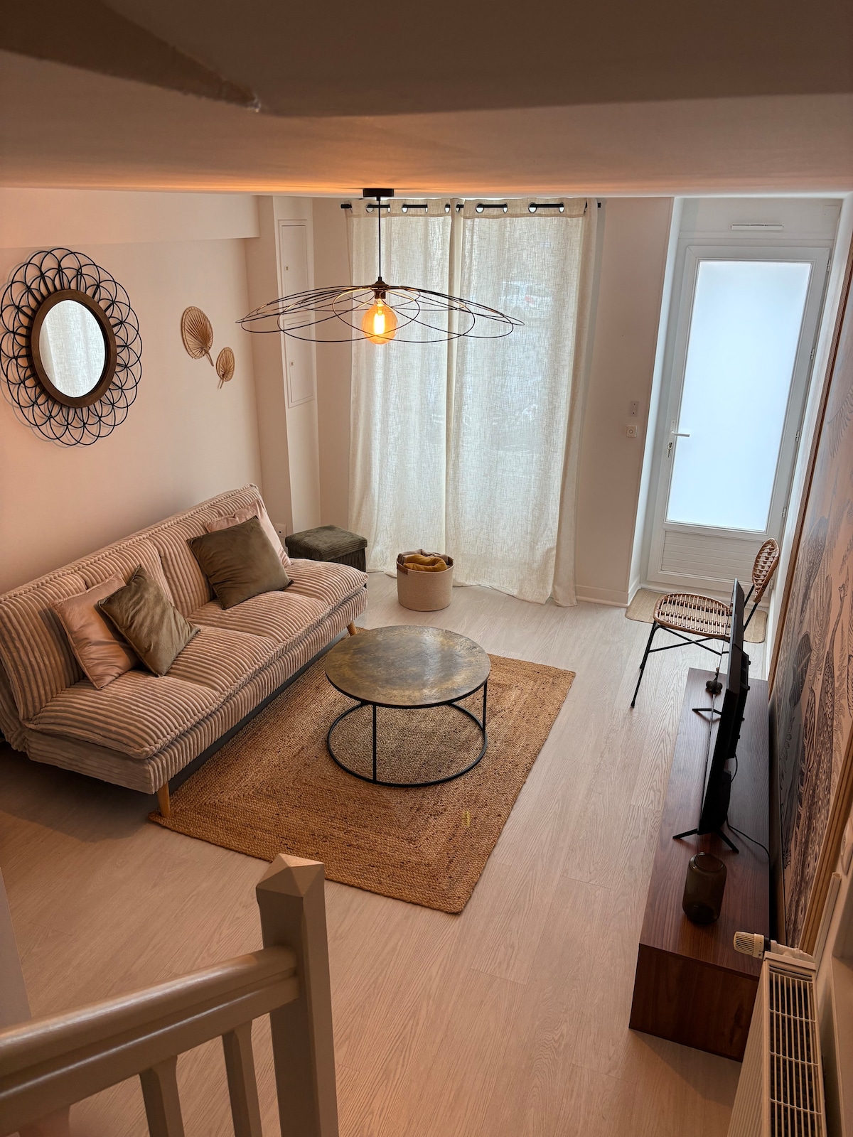 Appartement T2. 400 m de la gare, 2mins à pied du centre ville. stationnement gratuit, prêt de vélo possible. Déco soignée, mobilier de qualité, pour un séjour agréable ou voyageur d'affaires. - pièce de vie avec un canapé convertible - tv de 108 cm netflix - cuisine ouverte équipée: plaque induction, four/micro-ondes, air-fryer, cafetière, grille-pain, bouilloire... - chambre séparée, lit 160×200 et préparé. - grande salle de bain avec machine à laver - patio agréable pour petit déjeuner.