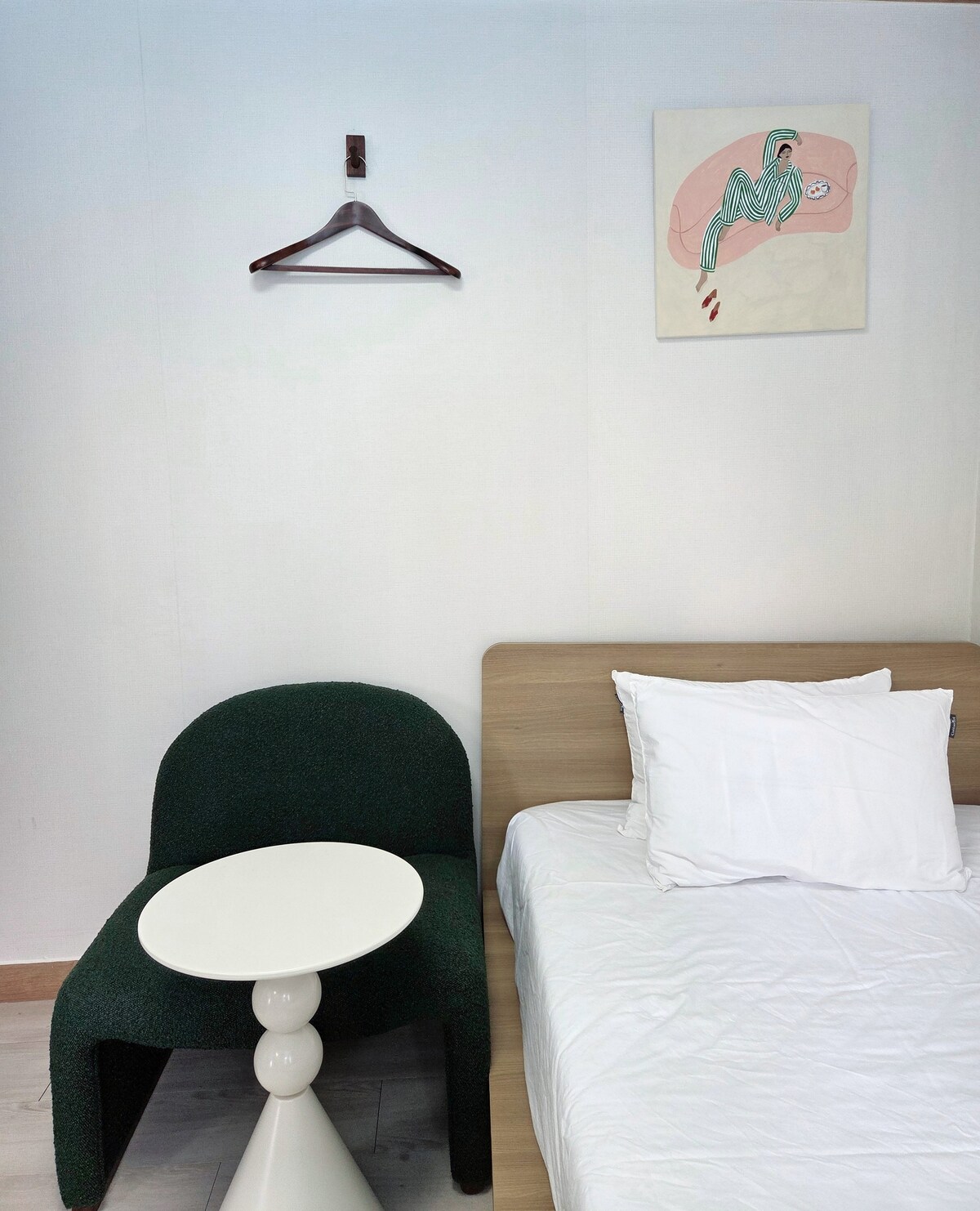 슈퍼 싱글베드 1개가 준비되어있는 1인실 입니다 . 단독 욕실 사용합니다. 온전한 휴식, 힐링 위해 준비된 공간으로 숙면에 도움을 주는 쿠션감 우수한 매트리스와 포근한 침구로 편안한 휴식이 되실 수 있도록 청결에 최선을 다하고 있습니다. 유니크한 인테리어가 어우러져 트렌디한 감성을 느껴보실 수 있으며, 포근한 침구류와 아늑한 호실로 포근한 숙소를 경험 할 수 있습니다. 충장로와 인접한 곳에 위치한 스테이로 주변에 유명한 로컬 맛집을 다양하게 즐기실 수 있고, 놀거리, 술상권과도 가까운 곳에 위치해 있으며, 도보 고객님들도 편하게 광주를 관광하실 수 있도록 짐 보관 서비스를 제공하고 있습니다.