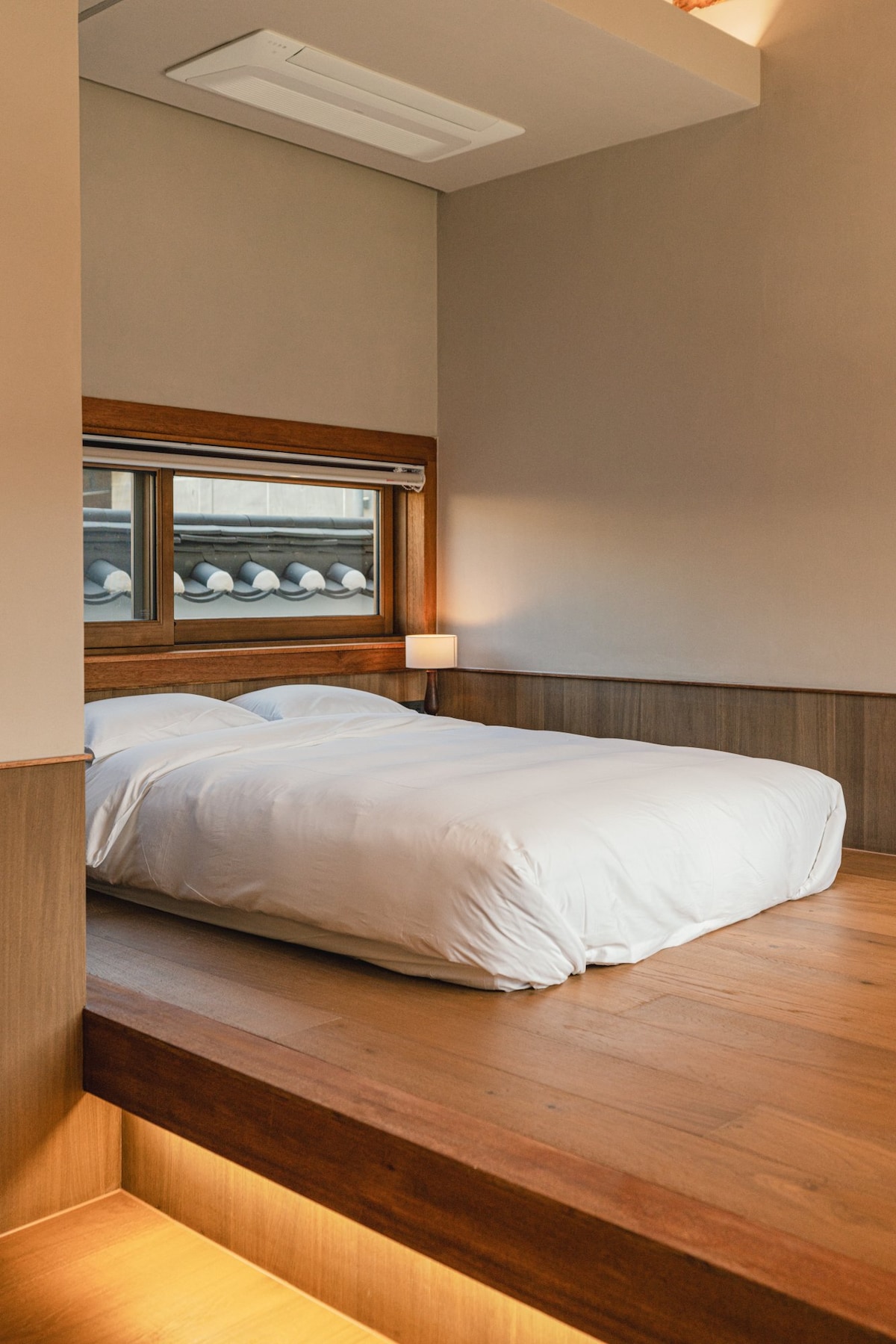 1956년 한옥 호텔로 시작된 명지각은 오랜 시간의 흔적을 간직한 채 새롭게 리모델링되어 현대적 감각과 전통이 조화를 이루는 공간으로 다시 태어났습니다. 나무의 결을 그대로 살린 객실에서 편안한 휴식을 즐기고, 고요한 한옥의 정취를 느껴보세요. 안사랑채 – 숙박객 라운지 직접 선별한 책이 마련된 안사랑채에서 여유로운 독서의 시간을 보내세요. 햇살이 은은하게 스며드는 공간에서 차 한 잔과 함께 책장을 넘기는 순간, 일상의 소란스러움에서 벗어나 깊은 쉼을 경험할 수 있습니다. 프라이빗 목욕탕 – 몸과 마음을 녹이는 시간 숙박객 전용으로 마련된 목욕탕에서 목욕, 사우나를 이용하실 수 있습니다. 여유를 즐기며 느긋하게 몸을 풀고, 온전히 자신에게 집중하는 시간을 가져보세요. 무료 조식 – 정성 가득한 한 상 아침에는 정갈하게 차려낸 무료 조식이 제공됩니다. 건강한 메뉴로 하루를 기분 좋게 시작해 보세요. 명지각에서 시간의 흐름을 느끼며 당신만의 여유를 찾는 여행을 떠나보세요.
