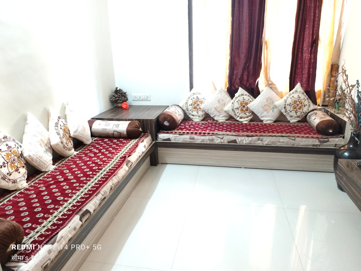Serene family retreat in central Nashik! Just 5 mins from Mumbai Naka and 20 mins from Nashik Road Station, this peaceful apartment is perfect for families and married couples. Located in a quiet residential complex, all rooms are East-facing, offering beautiful morning sunlight and excellent ventilation. Explore nearby attractions like Panchvati, Ramkund, Sula Wines, and Trimbakeshwar. Enjoy complete privacy with full access to the apartment—no shared spaces.