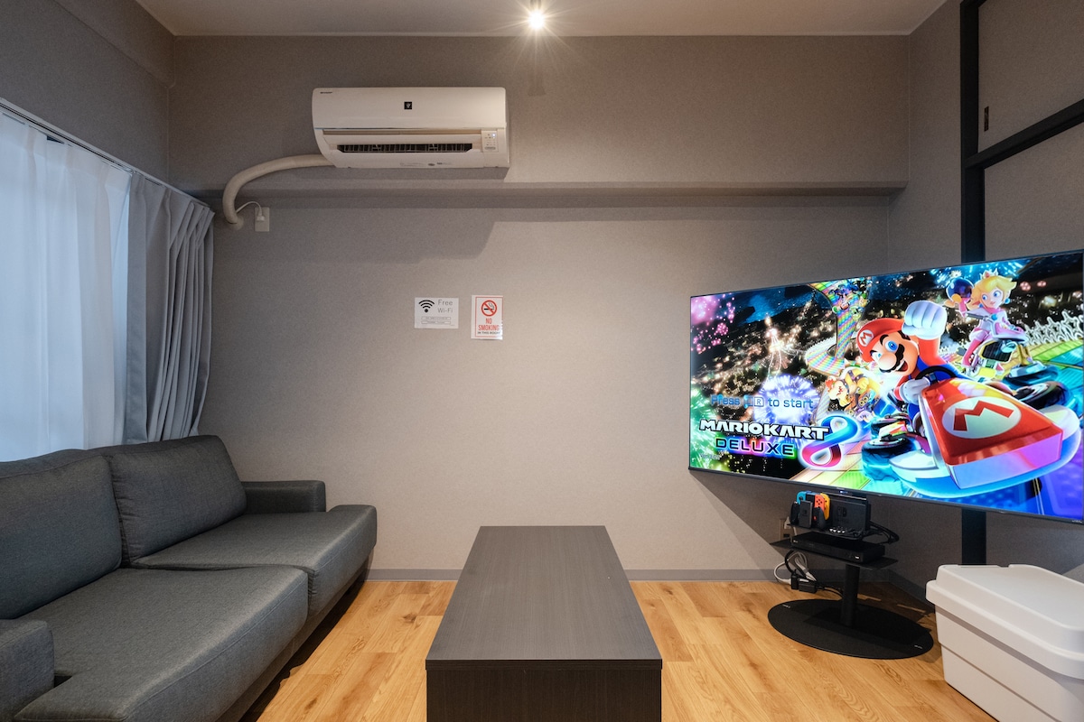 A solo 3 minutos a pie de la estación con fácil acceso a Namba, USJ y más. El baño y el inodoro son ideales para familias o grupos mixtos. Disfruta de un Nintendo Switch, proyector, juegos de mesa y cartas: diversión tanto para niños como para adultos. Pasa las noches viendo películas o jugando después de un día fuera. Totalmente equipada con muebles, electrodomésticos, utensilios de cocina y lavadora-secadora. Supermercados, tiendas de conveniencia y farmacias están a poca distancia a pie.