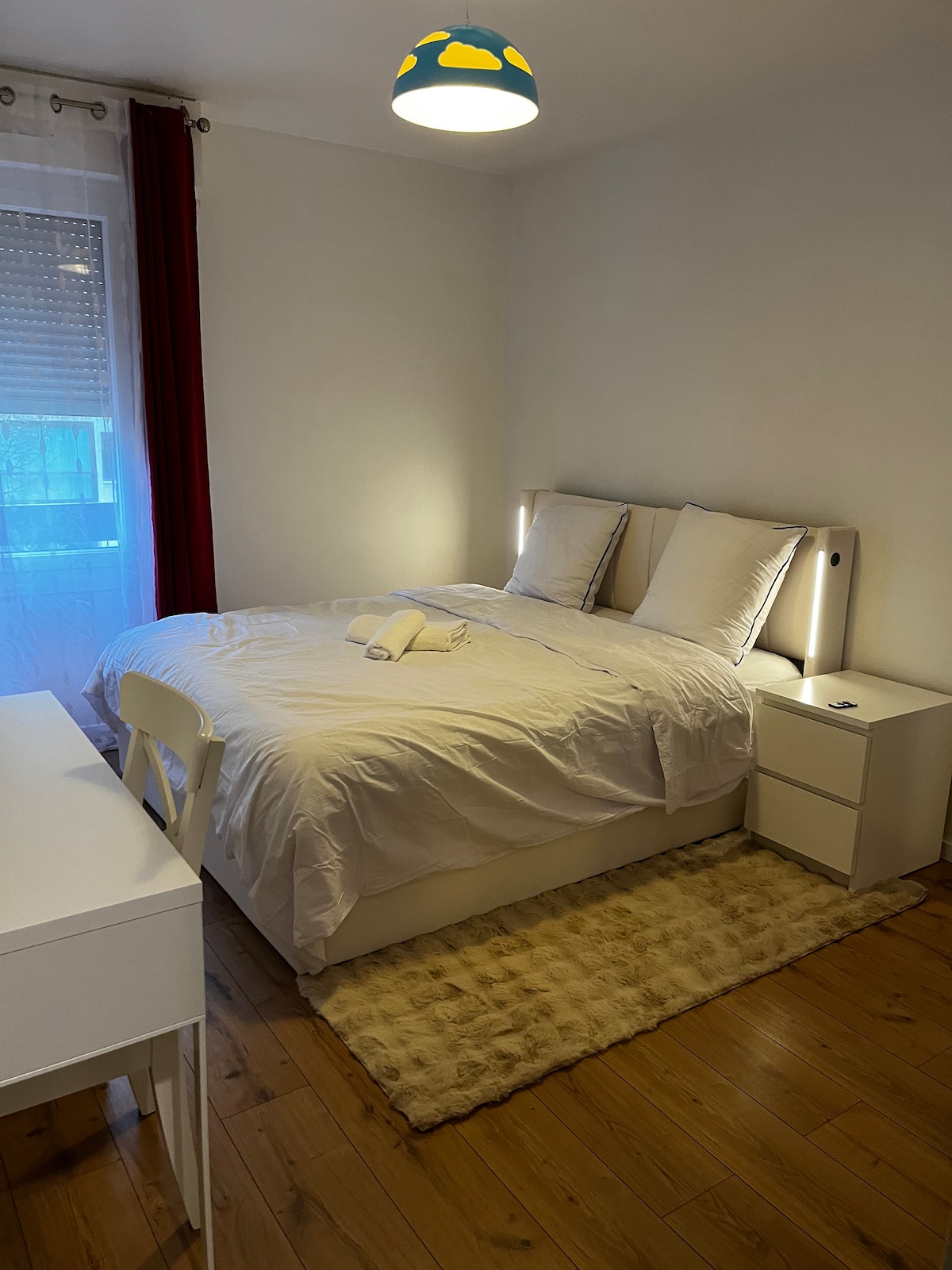 Ce logement paisible offre un séjour détente pour toute la famille. Idéalement situé : Bus, Tramway, Cinéma, Bibliothèque, Centre Commercial Atlantis, Zenith, 10 min de l'aéroport, 20 min du Centre ville de Nantes, 40 min de la Mer Ce logement comporte 3 belles Chambres indépendantes (linges de lit fournis, lit parapluie), une cuisine équipée, un Salon (Wifi et TV inclus) et une loggia pour profiter d'une vue sur l'extérieur Place de parking privative et sécurisée idéal pour une famille