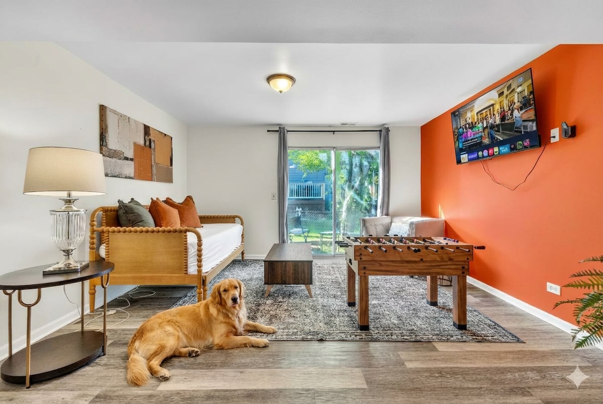 Nuestra casa de 3 dormitorios y 1,5 baños es perfecta para un grupo de amigos o familiares que buscan un lugar limpio en un barrio seguro en la frontera de Naperville/Aurora. Hay mucho espacio para que 9 personas duerman cómodamente (5 camas y un par de cómodos sofás), así como 3 televisores inteligentes, una parrilla de gas y un patio grande, privado y completamente cercado (incluidos juegos al aire libre), un espacio de escritorio y mucho más. ¡Disfruta de un acceso cercano a las carreteras principales y a muchos restaurantes, tiendas, parques y otros lugares de interés!