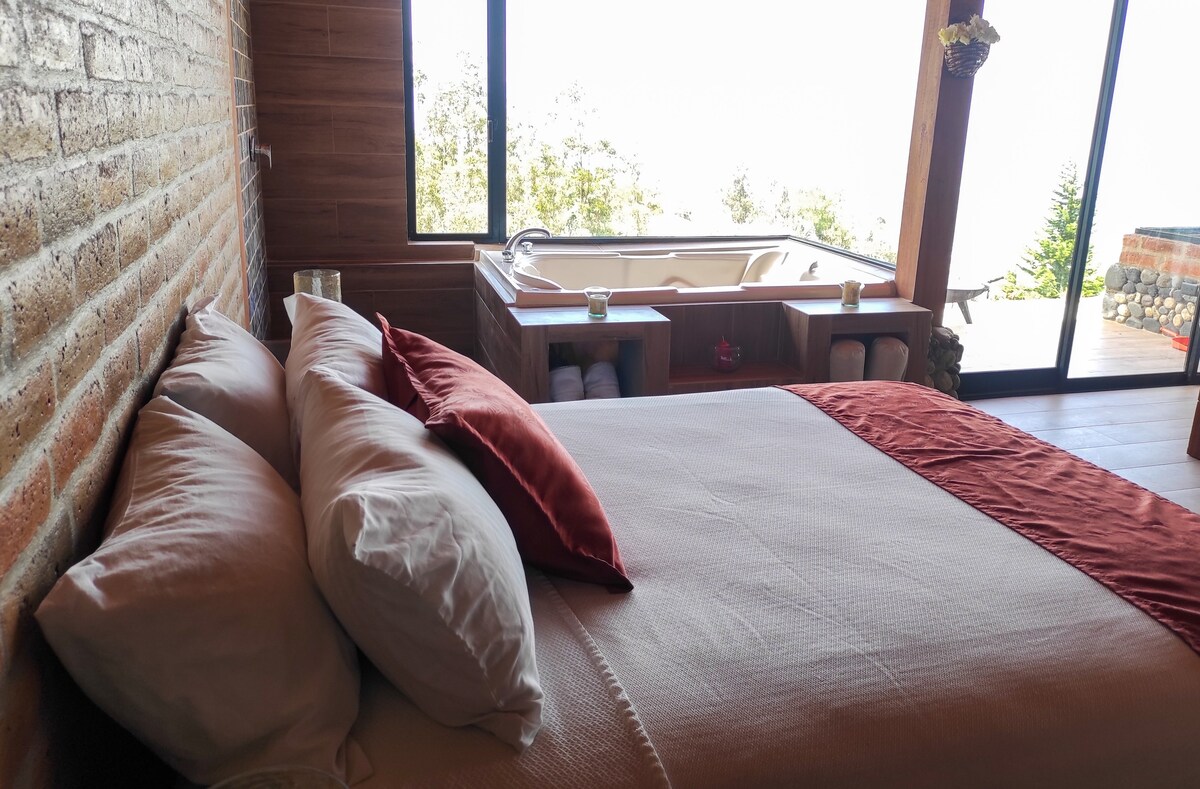 Relájate en esta escapada única y tranquila, experimenta la paz y conectate con la naturaleza en una cabaña con vista a los volcanes a una hora de Quito