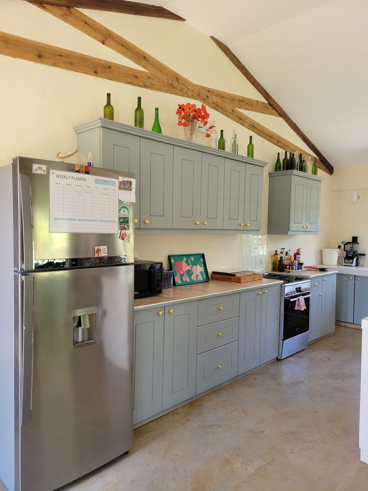 Welcome to the Penthouse Suite at Idan Barn, a warm, inviting hideaway perched on the top floor of our rustic-modern barn. This self-catering suite offers a private bedroom, lounge area, dining space, and a fully equipped kitchen — all opening to a large balcony with mountain & country views. Relax with a movie on the TV, enjoy our board games, or unwind on the balcony as you watch the sun rise over Mt Kenya. Guests have full access to our on-site café, ideal for freshly made meals and drinks.