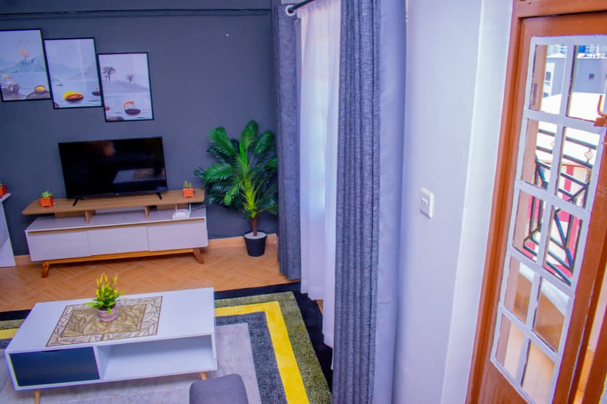Este encantador y encantador departamento de dos dormitorios está ubicado en Gilgil a lo largo de la autopista Nakuru - Nairobi. A menos de 5 minutos de la carretera, el espacio único está dentro de un apartamento que está tripulado las 24 horas, los 7 días de la semana, y con estacionamiento seguro gratuito. El anfitrión se queda cerca y está disponible para obtener ayuda. Toma 30 minutos en auto hasta el Parque Nacional Lake Nakuru, el lago Elementaita, el lago Naivasha, el restaurante The Delamare y otros restaurantes, espacios sociales y centros comerciales. ¡Te damos la bienvenida a tus estancias cortas y largas!