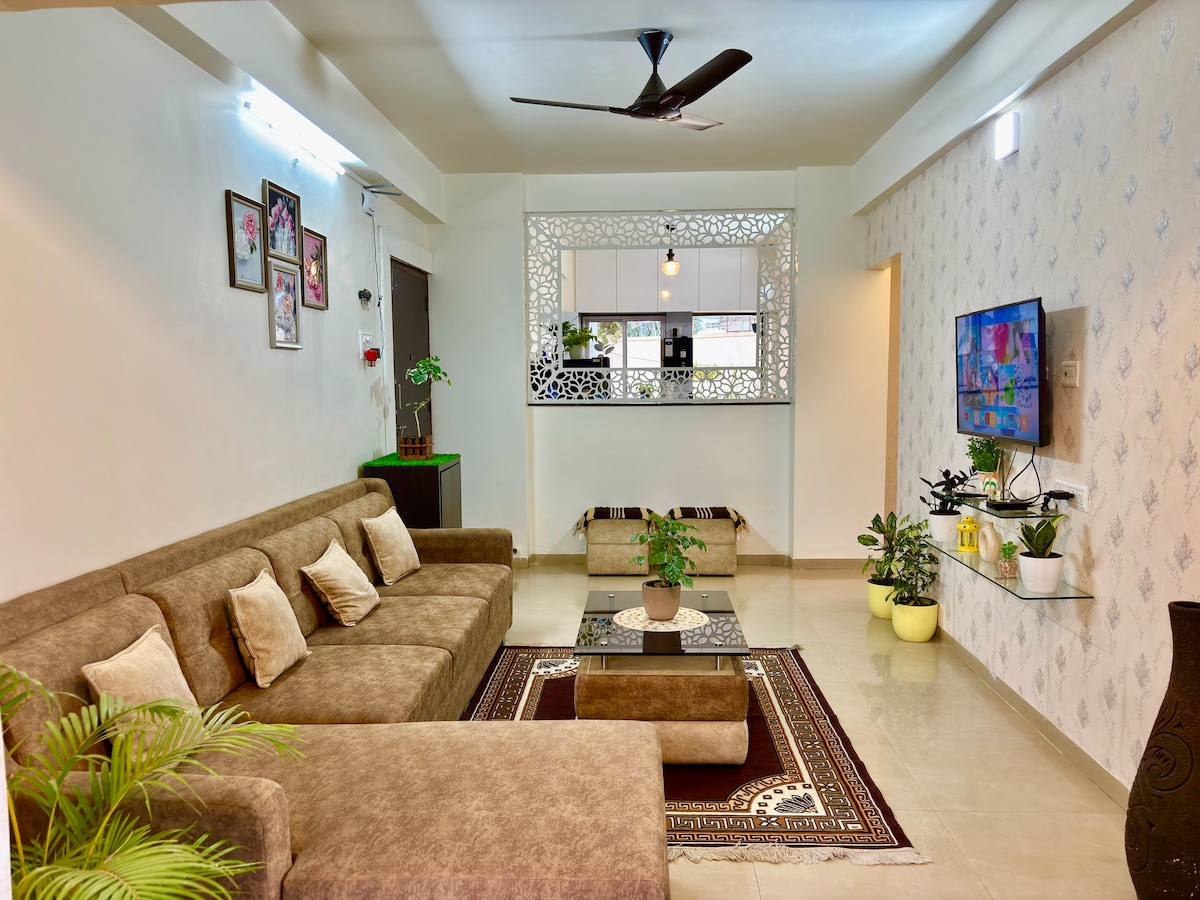 Serene family retreat in central Nashik! Just 5 mins from Mumbai Naka and 20 mins from Nashik Road Station, this peaceful apartment is perfect for families and married couples. Located in a quiet residential complex, all rooms are East-facing, offering beautiful morning sunlight and excellent ventilation. Explore nearby attractions like Panchvati, Ramkund, Sula Wines, and Trimbakeshwar. Enjoy complete privacy with full access to the apartment—no shared spaces.