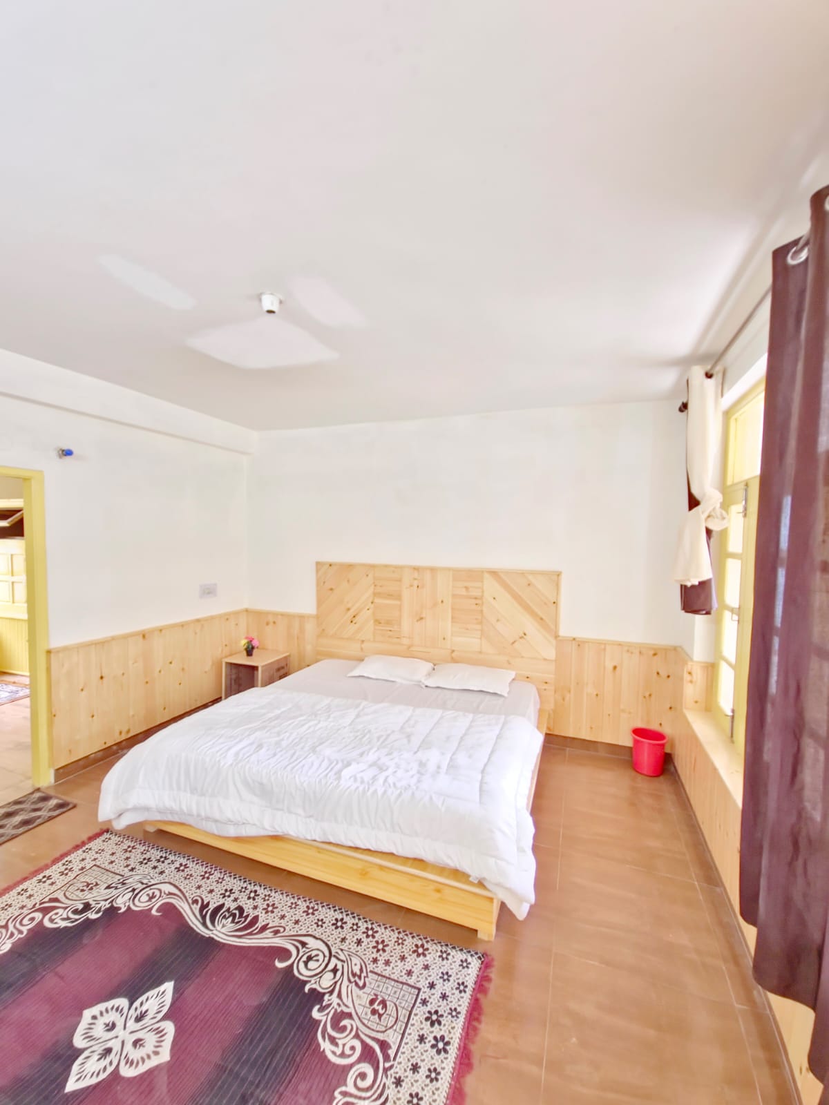 Designed for families and small groups, our spacious Family Room blends modern comfort with warm mountain aesthetics. The room features a plush king-size bed and an additional sleeping area, making it ideal for parents traveling with children or friends staying together. Room Highlights: • King-size bed + extra sleeping space • Spacious layout with wooden interiors • Cozy seating area • Large windows with peaceful views • Flat-screen TV & wardrobe • Clean, modern attached bathroom