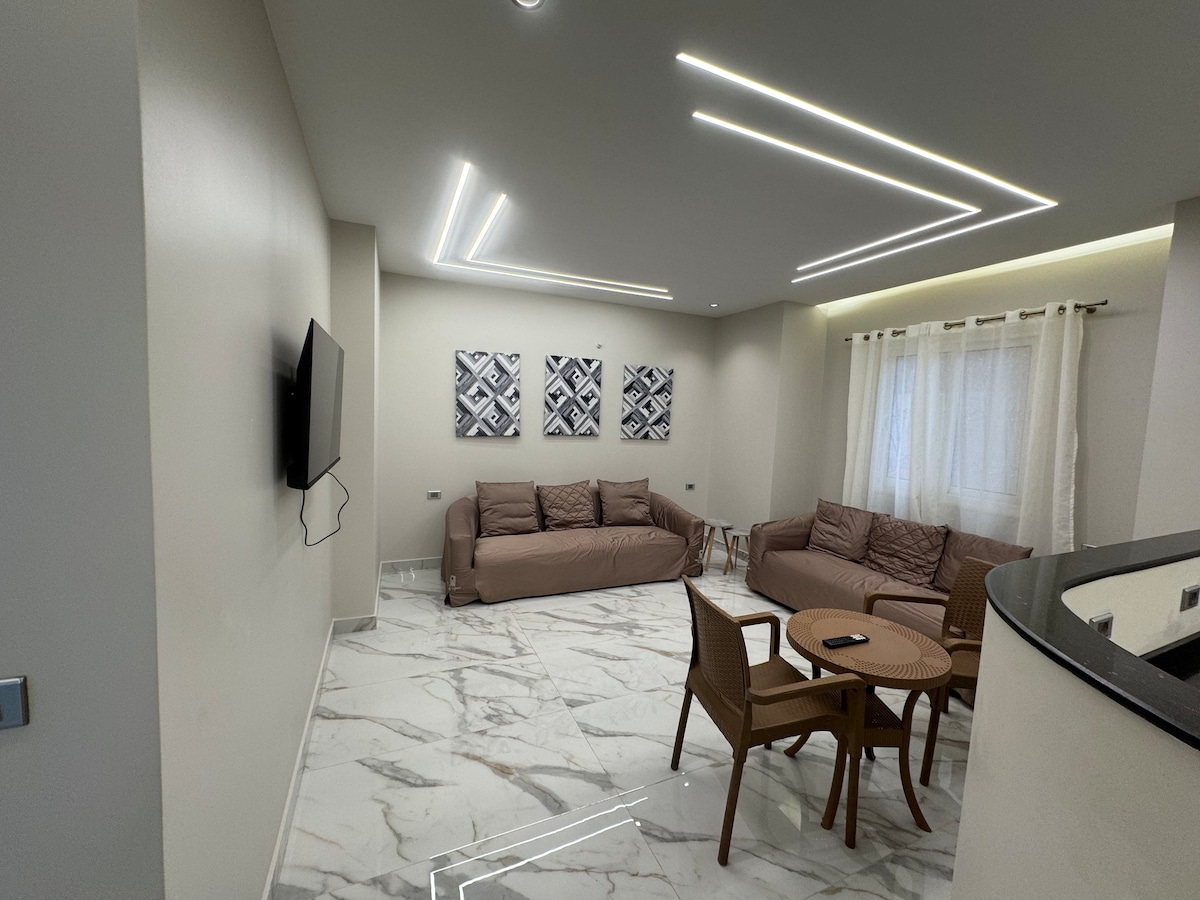 Disfruta de la comodidad en este elegante apartamento de 3 dormitorios situado en Primera Compound, Nasr City. El apartamento cuenta con un amplio dormitorio principal con baño privado, una cocina de planta abierta, un acogedor comedor y muebles modernos en todas partes. Ideal para familias, viajeros de negocios o estadías largas. Convenientemente ubicado a unos 15 minutos de los principales centros comerciales, restaurantes y atracciones clave de El Cairo. Disfruta de wifi de alta velocidad, televisión inteligente y un entorno tranquilo y seguro.