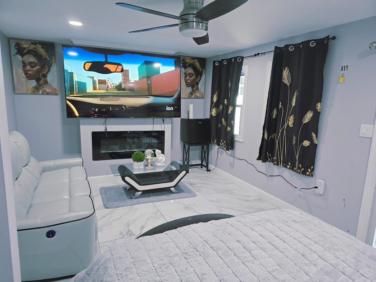 Bienvenido a nuestro nuevo estudio en el sótano, cuidadosamente diseñado para tu comodidad y conveniencia. Relájate en una cama tamaño queen después de un día de exploración o convierte los lujosos sofás en una cama para huéspedes adicionales. El rincón dedicado al lugar de trabajo es ideal para realizar tareas o simplemente navegar por la web. Entra en el elegante baño, completo con suelos radiantes, que añaden un toque de lujo a tu estancia. Experimenta la vida moderna y la relajación acogedora en un solo espacio. ¡Reserva ahora para una estancia inolvidable!