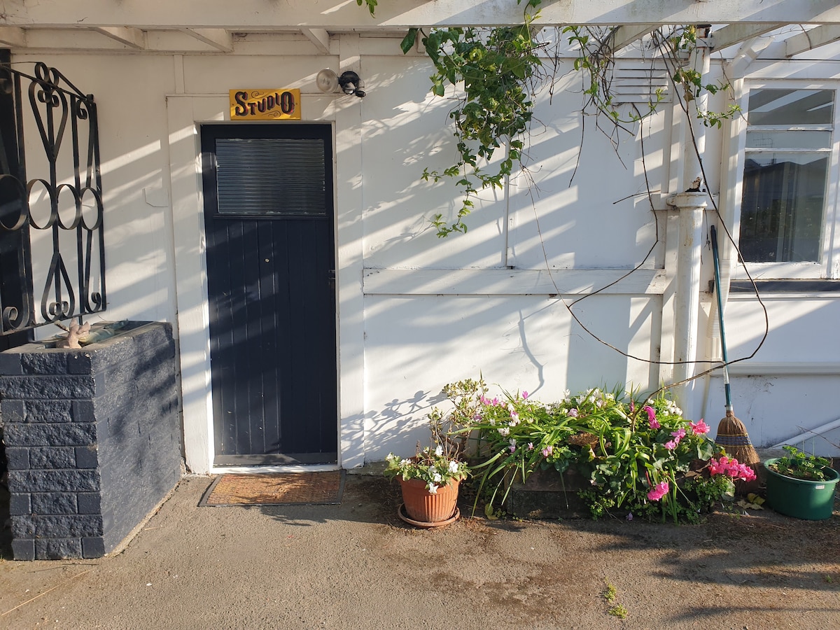 Come and relax in our sparkling clean studio located in our peaceful garden behind our home. It is 1.8km to the CBD/ocean - 3 mins by car or flat 20 min walk. Enjoy a screened private deck with outdoor furniture, comfy beds (a king or 2 singles) , 2 lounge chairs, a compact well-equipped kitchen- hot plate, microwave, BBQ (no oven), a cafe style dining table , a good sized TV, and a tiled modern bathroom. Off street parking & bike lockup. Free WIFI, no cleaning fee. No children under 10.