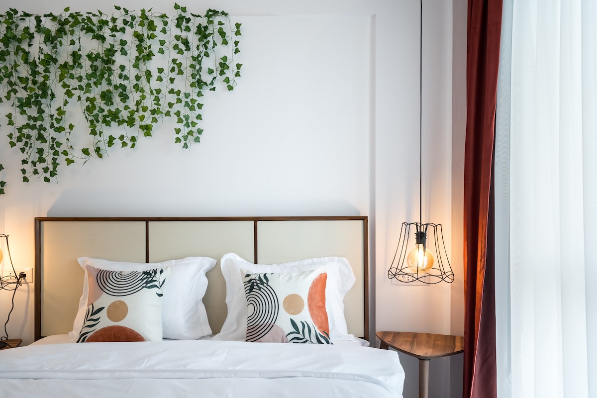 Experience the charm of our urban loft in the heart of the city! Enjoy the peace in our elegant bedroom, with wide windows that fill the room with sunlight, and settle into a luxurious marble bathroom. Located in a lovely neighborhood, this inviting space offers a fully equipped kitchen, a relaxing living area, and a small balcony. Perfect for the modern traveler who values style and comfort. Book your stay - delight in the simple luxuries and make this loft your personal hideaway.