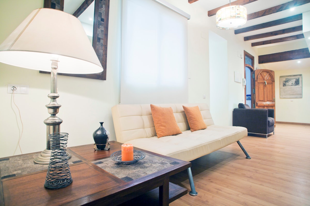 Terreta Flats - Blue 6 ¡Disponibles varios lofts totalmente nuevos para grupos de hasta 23 adultos! Zona tranquila en barrio auténtico con aparcamiento gratuito en la calle. Conexión directa Metro L10 a zonas de interés como: - Oceanografic - Centro comercial el saler - Ciudad de las artes - Barrio russafa - Playas - Centro ciudad Bus Nº 4 y 30 a 50m Bus Nº 95 a 400m => Hacia la marina y playa malvarrosa Ideal para parejas, también adaptado para 3 adultos con un sofá cama.