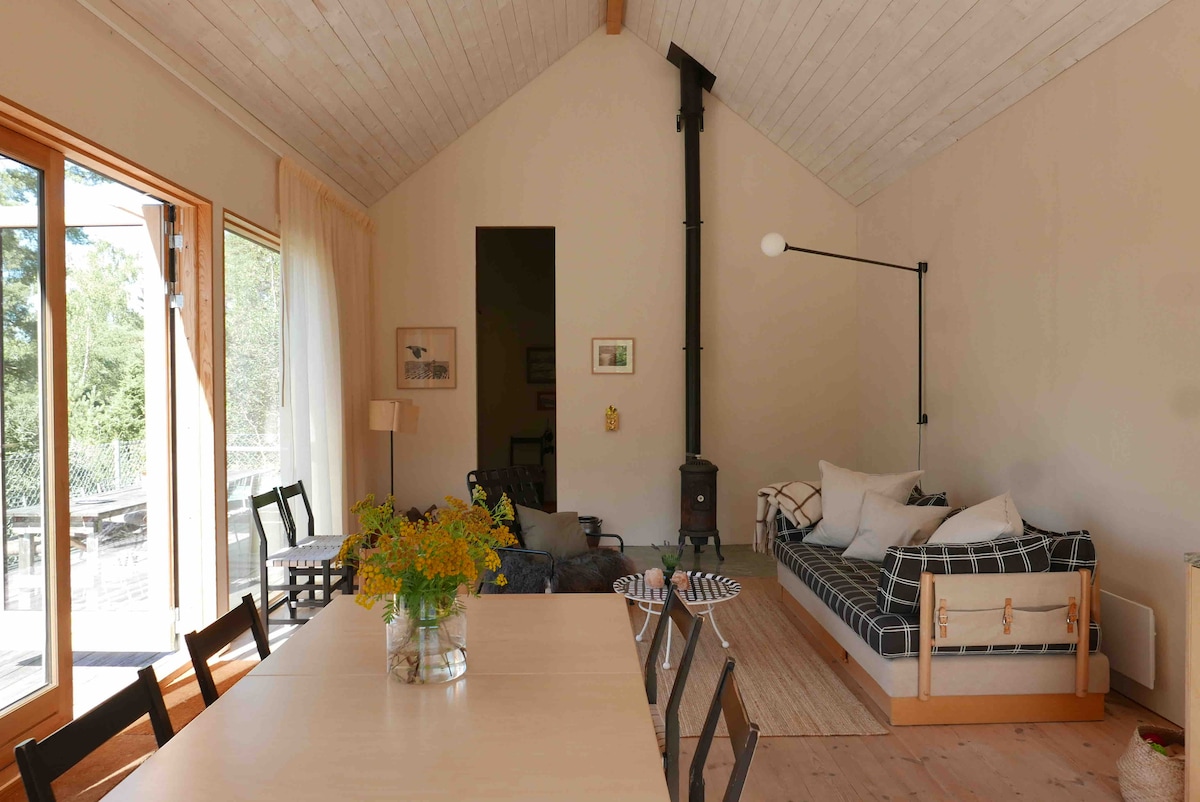 Featured in Airbnb Unique Stays - Three Cabins That Break the Mold Modern house with huge windows and balcony around the house. Great garden towards the forest. It feels like your in a treehouse when in the living room. - Sauna to rent in the garden. - 450 meters to the lake. - Climbing wall, trampoline and slackline in the backyard. - Great internet connection. Two bedrooms and a huge kitchen/living room with a fireplace. Perfect for 4-5 guests or a family who likes to cook, play and swim.