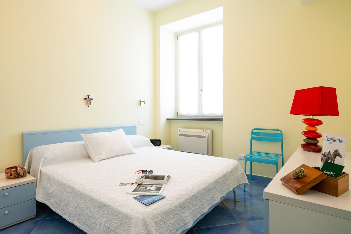 Situato sul Corso principale di Lacco Ameno, e’formato da una camera da letto matrimoniale, poltrona letto, bagno, cucina. L'ampio terrazzo panoramicissimo, dal quale ammirare il porto di lacco ameno e il suo "fungo", è attrezzato per potervi cenare e sdraiarsi al sole. Basta scendere le scale di casa per avere tutto a disposizione; spiagge, fermata bus, taxi, parcheggio, supermarket, bar, ristoranti, shopping, e a meno di 1km la splendida baia di S. Montano e il Museo di Pithecusae.