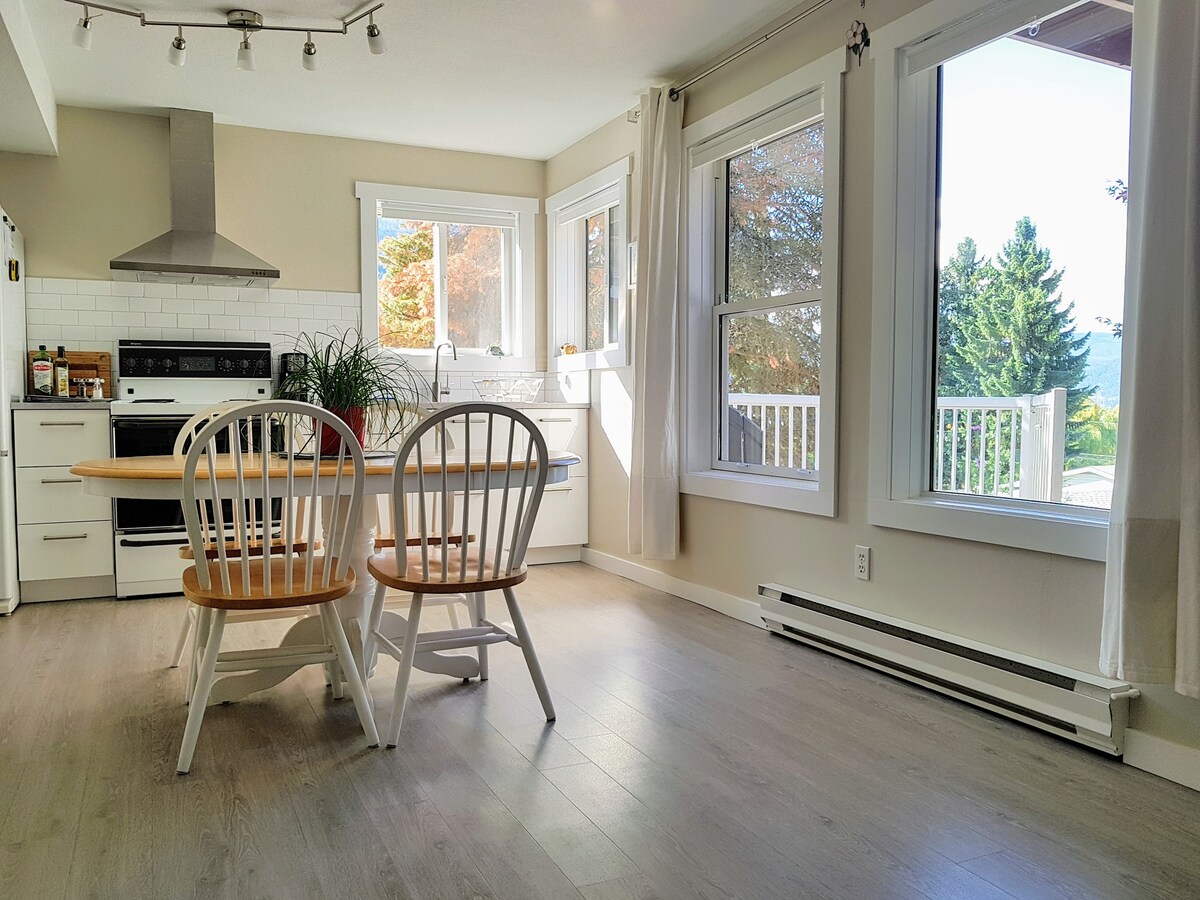 Quítate los zapatos y disfruta de la serena vista en nuestra acogedora suite en la cima de una colina. Disfruta de una cocina equipada con todas las comodidades que esperas, además de equipos de café especiales que te encantarán. Cruza la carretera y baja por el sendero hasta nuestra playa de arena privada, y asa algunos malvaviscos en la fogata mientras estás allí. La novedad y la aventura están cerca: a solo 3 minutos de Nelson, a 28 minutos de Whitewater Ski Hill y a 1 minuto de la ruta de senderismo Lyons Bluff.