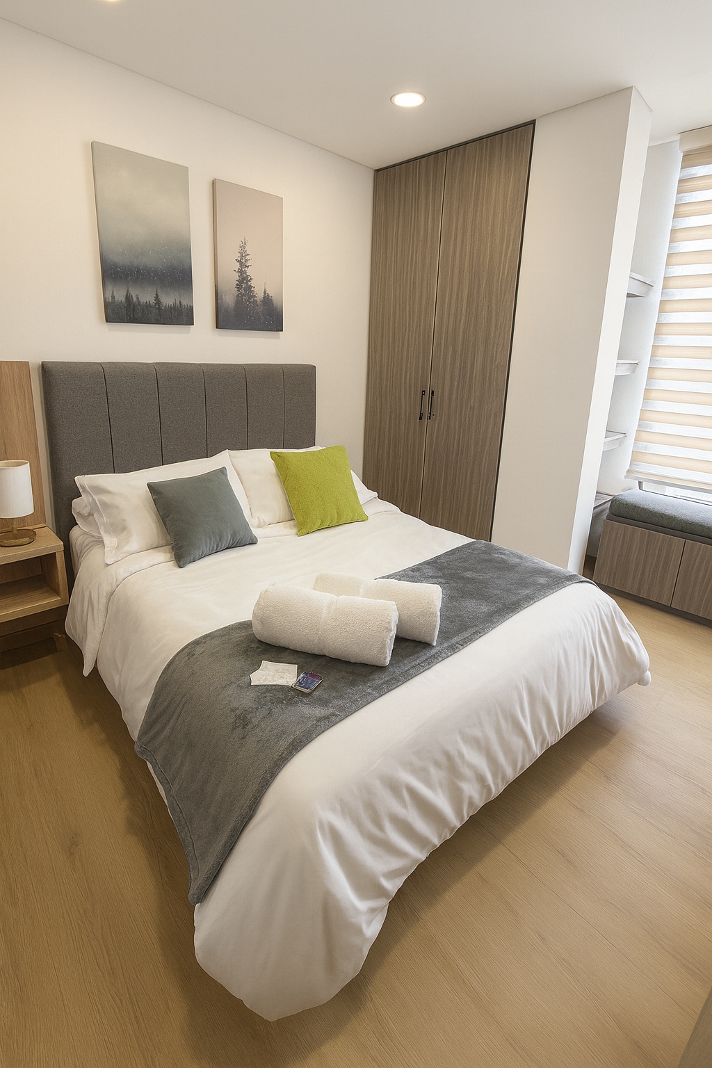 Este hermoso apartaestudio combina comodidad, calidez y ubicación estratégica. Perfecto para descansar mientras disfrutas de todo lo que ofrece Bogotá: conciertos, eventos deportivos, diligencias o escapadas urbanas. A minutos del estadio El Campín, Movistar Arena, Embajada de EE. UU. y aeropuerto. Este espacio tranquilo y luminoso cuenta con una cama confortable, baño privado, cocina equipada, agua caliente, wifi y TV. Perfecto para viajeros o parejas que buscan comodidad y buena ubicación.
