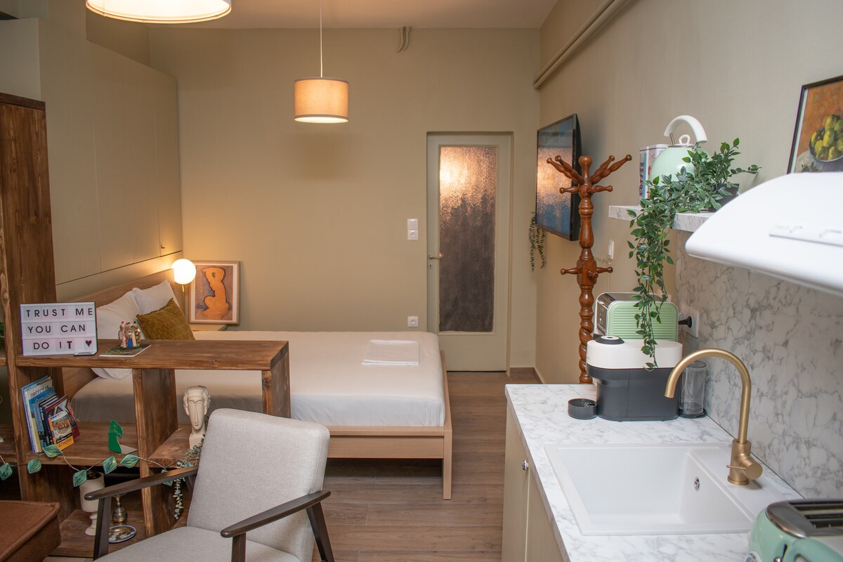 Un apartamento bien diseñado es todo tuyo , ubicado en un barrio seguro y tranquilo a solo 4 minutos a pie de la famosa zona de koukaki y a 20 minutos de la Acrópolis. ~La estación de metro y la estación de tranvía están a solo 7 minutos a pie. ~Wifi rápido gratis ~ Aire acondicionado de alta calidad:calefacción/aire acondicionado ~Nespresso Vertuo Pop ~Lavadora ~Registro de entrada autónomo flexible ~Entrada privada ~T.V. 50'' ~ Plazas de estacionamiento gratuitas en la calle ~ Cama cómoda ~SuperAnfitriones con los que puedes contar