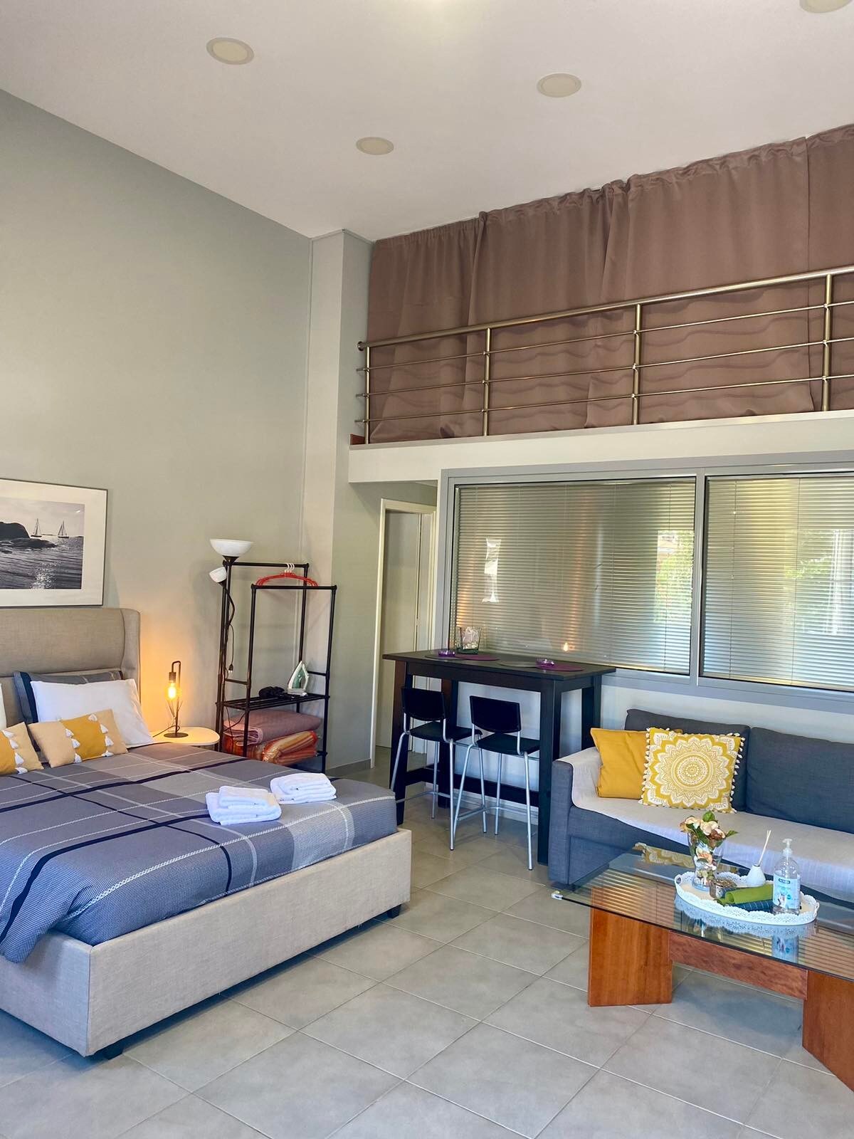 Suite minimalista, recientemente renovada a 10 minutos del aeropuerto. Independiente con baño privado, terraza, jardín y vistas impresionantes. Su elegante diseño y estilo moderno le ofrecerán una experiencia de alojamiento inolvidable. Está situado en una colina, muy cerca de: - Metropolitan Expo (10 minutos), - Puerto de Rafina (15 minutos), - Smart Park - Zoológico - Estación de metro Ideal para vacaciones, compras, viajes de negocios o personas que quieran trabajar digitalmente con wifi rápido y gratuito.