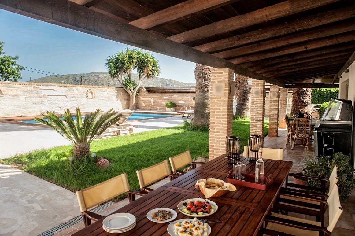 Villa junto a la piscina con jardín en Lagonissi