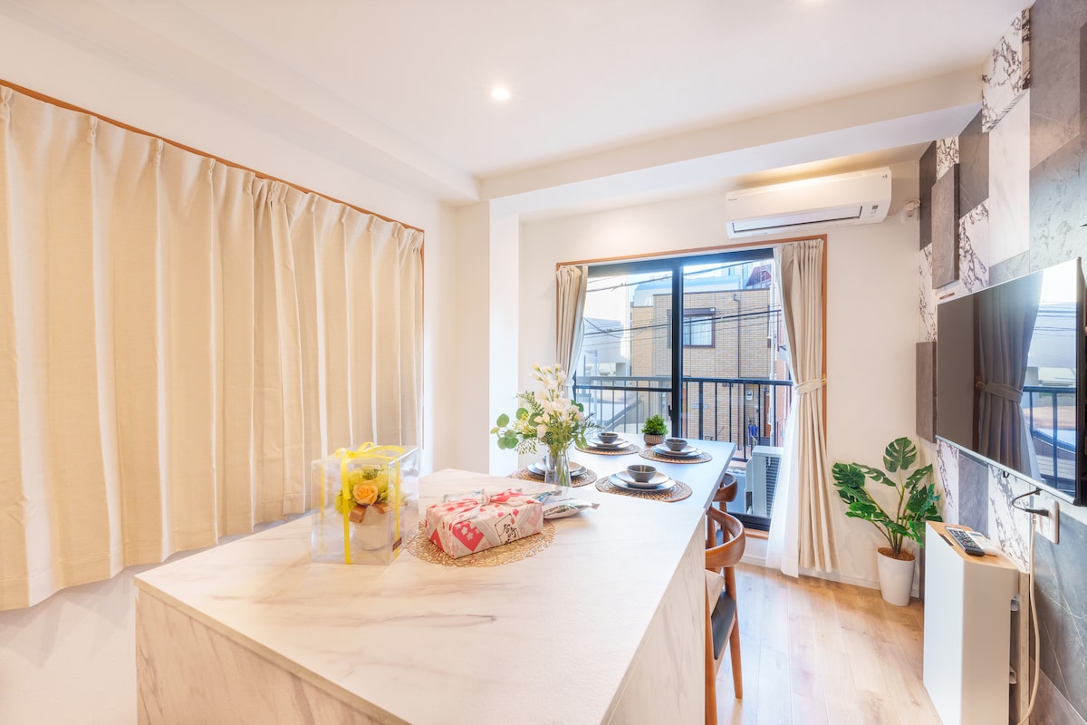 Experience Sangenjaya Villa A fully renovated designer home on a peaceful street—just minutes from central Tokyo. This unique stay features a 3.5m-long island kitchen, a spacious outdoor area, and 7m-high ceilings with traditional Japanese carpentry details. Enjoy a custom-built bar counter, handmade staircase and loads of sunlight on a quiet street close to everything Perfect for families or groups looking for a stylish yet central Tokyo stay in trendy Sangenjaya just one stop from Shibuya.
