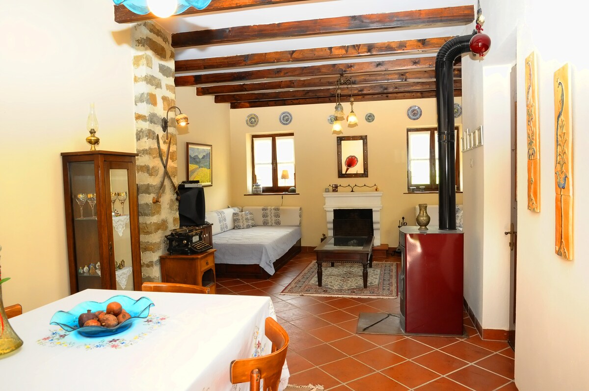 It's a stone house built in 1890, and now turned into a unique little guest house with a wood burner and a private terrace. It has a beautiful mountain view. The tranquility prevails everything. The main position of the house is East - South so it is sunny all the day.