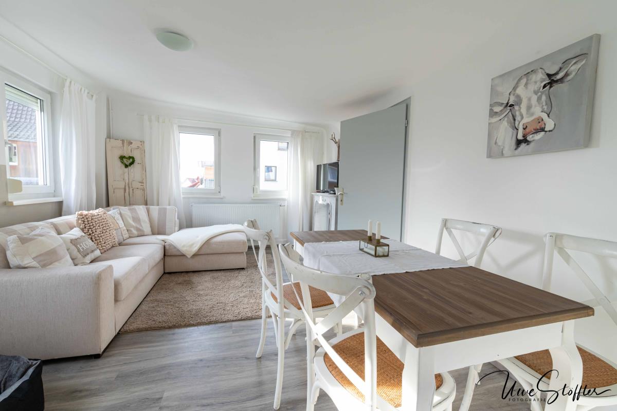 Relájate en este alojamiento especial y tranquilo. El apartamento en el 2º piso ofrece 2 dormitorios, 1 salón y comedor, cocina y baño. La casa es de nueva construcción y, en consecuencia, el interior está decorado con colores brillantes y agradables. El apartamento está en una zona tranquila y tiene una hermosa vista al campo, donde se puede recuperar de la vida cotidiana. Equipamiento: Calefacción por suelo radiante, cocina equipada completa incl. vajilla, etc., ducha a ras de suelo, ventanas del suelo al techo en la cocina-comedor y en el salón.
