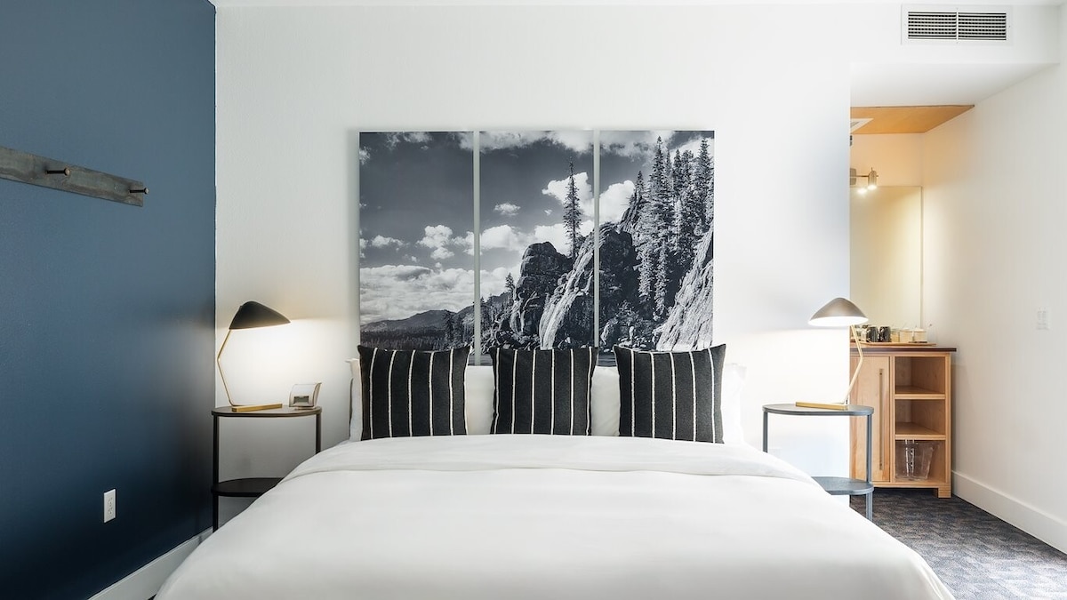 Habitación privada con una cama tamaño queen. Hay baños compartidos al final del pasillo. El West River House es un hotel histórico sencillo y asequible en el centro de Truckee, a poca distancia a pie de bares, restaurantes y el río. Es perfecto para aquellos que buscan explorar y relajarse sin distracciones. Aunque no hay televisión, el wifi gratuito es súper rápido. Las fotos son de 2 habitaciones diferentes. Solo se reservará una de las habitaciones. No se permiten fumadores ni mascotas.