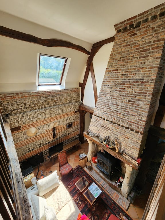 Encantador horno de pan antiguo con entramado de madera, situado a orillas del arroyo, consta de: - Sala de estar con estufa de leña, - Cocina, - En la planta superior: -cuarto de ducha/WC accesible por una escalera de molinero (ver fotos), -habitación con una cama de 160x200 con vistas al arroyo, accesible por una escalera de molinero (ver fotos), El dormitorio y el baño no están comunicados. Muebles de jardín, barbacoa, aparcamiento privado, leña incluida Nota otra casa, la Casa de piedra, está a 100 m
