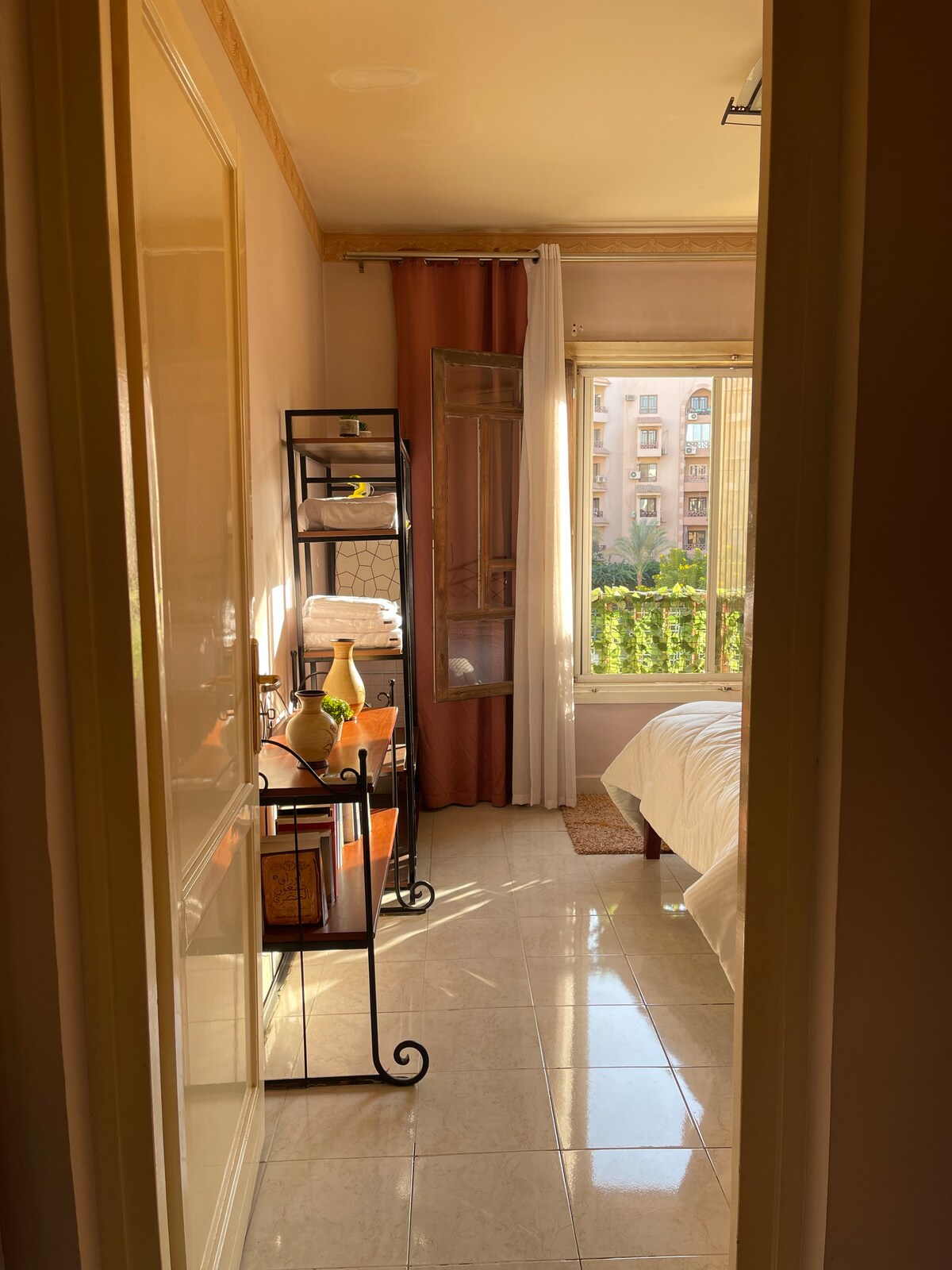 🌿 Welcome to Your Sunny Modern Escape in New Cairo near Concord Plaza & South Teseen Whether you’re visiting for a short break, a family stay, or business, this space offers the perfect blend of comfort, style, and convenience. Located in one of New Cairo’s secure, well-connected areas, you’ll enjoy a bright minimalist home with a cozy terrace, plus cafés, malls, and major roads just steps away. It’s the ideal base to explore the city while enjoying a peaceful retreat close to the airport.