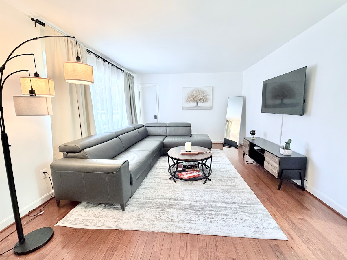Ya sea que estés buscando un alojamiento para quedarte un par de días, semanas o meses, este lujoso apartamento en el sótano ofrece un ambiente espacioso con el toque perfecto de estilo, comodidad y sofisticación. Disfruta de la chimenea eléctrica, la oficina, el rincón de lectura y tu propio baño privado de spa. Esta suite tiene una entrada privada y se encuentra en un callejón sin salida muy tranquilo con muchos restaurantes y tiendas cerca. La casa se encuentra a solo 20 minutos de DC. No apto para niños pequeños.