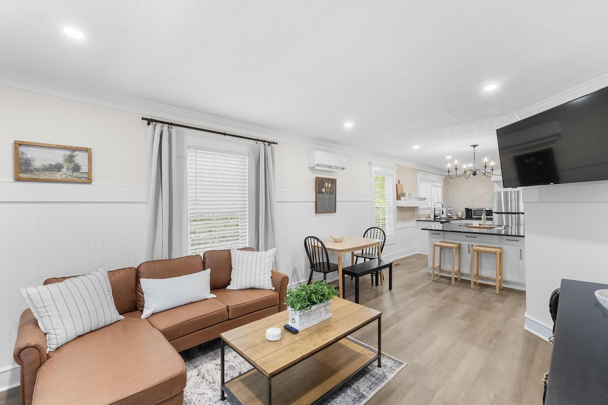 Entra en la comodidad boutique de este estudio de nuevo diseño en el histórico Walton Way, donde el encanto sureño se encuentra con el estilo de Ralph Lauren. ✔ Ambiente de hotel boutique en todo ✔ Cama de tamaño completo con sábanas de alta calidad ✔ Rincón elegante para comer/trabajar ✔ Cocina pequeña (nevera, microondas, cafetera) ✔ Estacionamiento privado Ideal para viajeros solitarios o profesionales. Camina hasta The Partridge Inn, a 10 minutos de Augusta National y a 5 minutos de la Universidad de Augusta.