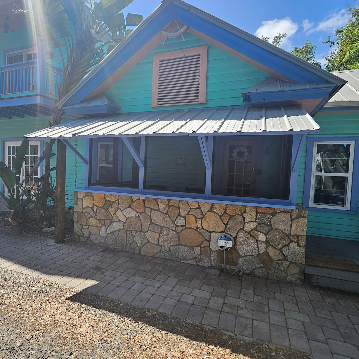 ¡Toma un camino privado desde la terraza, directamente al agua! Esta casa de playa de 2 dormitorios y 1 baño cuenta con una gran terraza junto a la playa para disfrutar del café y los amaneceres, ver a los niños jugar o simplemente levantar los pies para relajarse. Lávate tus preocupaciones en una ducha caribeña aislada al aire libre. Prepara una deliciosa comida en la cocina o haz una parrillada. Cuando haga demasiado calor... disfruta de una amplia vista al mar desde la comodidad del sofá con aire acondicionado. ¡Disfruta del aire libre después de que se ponga el sol en la hoguera!