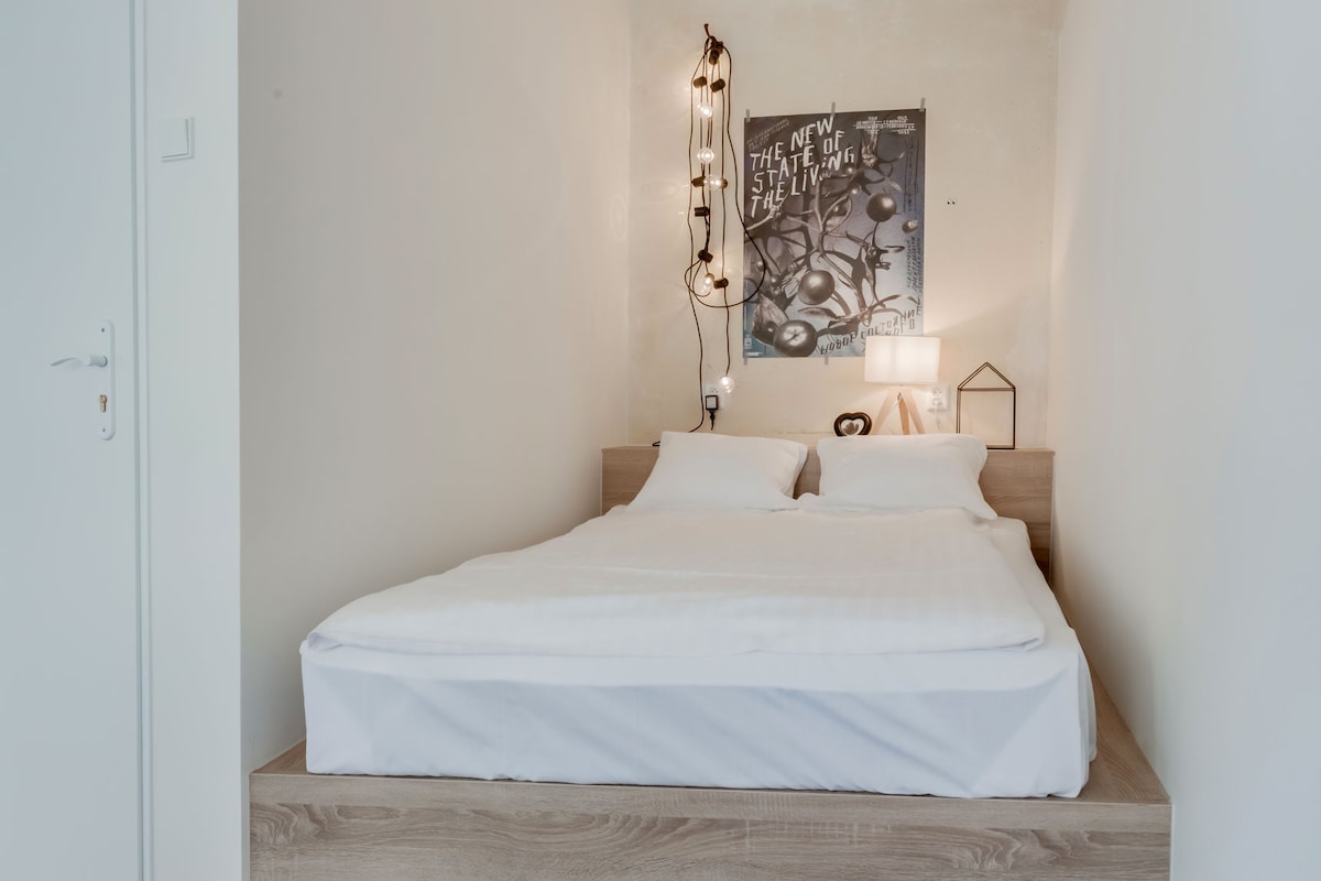 Elegante estudio con baño privado/ducha/inodoro situado a 10 minutos a pie de la estación central y la calle principal de Praga, la Plaza Wenceslao. Todos los estudios cuentan con TV inteligente con Netflix/TV vía satélite gratuita, nevera, hervidor eléctrico, secador de pelo y té/café y champú/gel de ducha gratuitos. El autobús del aeropuerto está a 10 minutos caminando. Parada de tranvía al centro de la ciudad en 3 minutos. Un supermercado Lidl está frente al alojamiento. Nuestros estudios son habitaciones totalmente independientes con el único espacio compartido que es una entrada común
