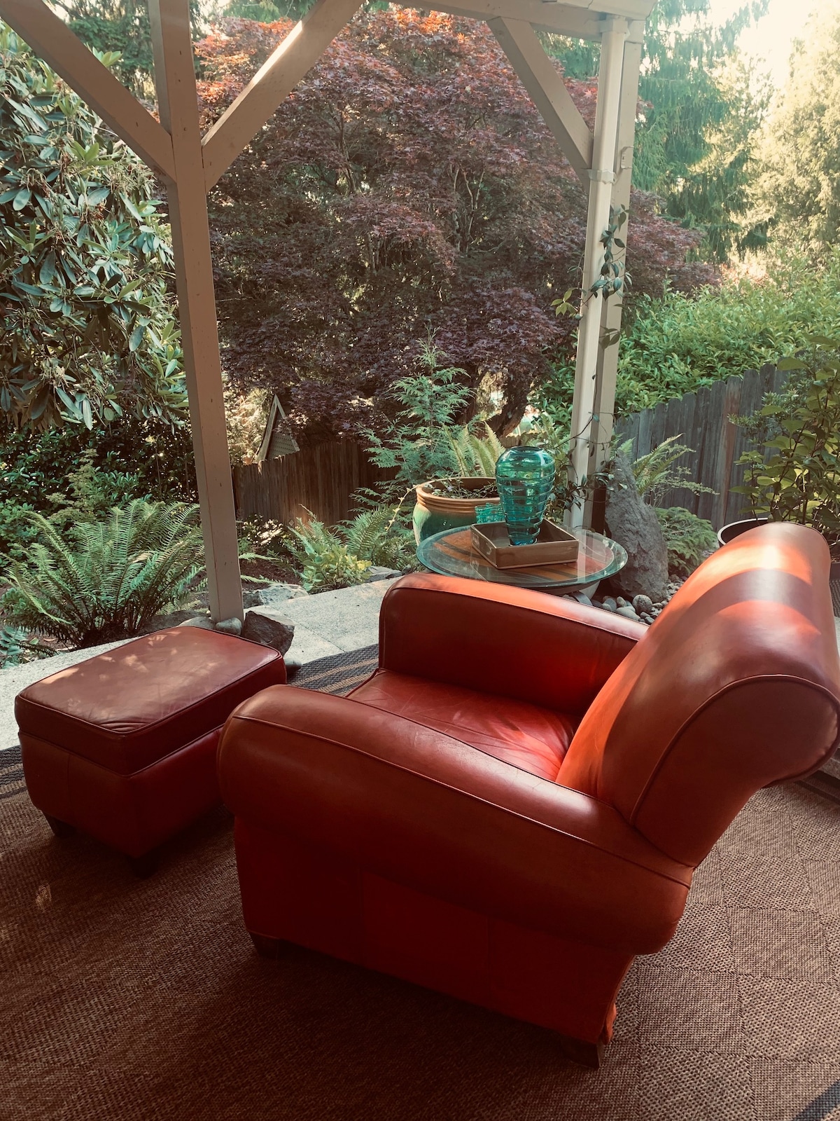 Patio cubierto tranquilo, jardines, cerca del puente I90