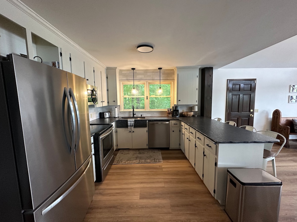 Escape to the peacefulness of High Rock Lake at this renovated waterfront getaway. Enjoy picturesque lake views from your private dock, grill under the stars, paddle around one of North Carolina’s favorite lakes, unwind by the gas and wood fire pit or in a cozy hammock. Located in Lexington, NC, with easy access to nearby cities, this getaway offers relaxation and adventure. Indoors, indulge in cozy comfort with ample amenities. Rave reviews highlight a magical ambiance and attentive host.
