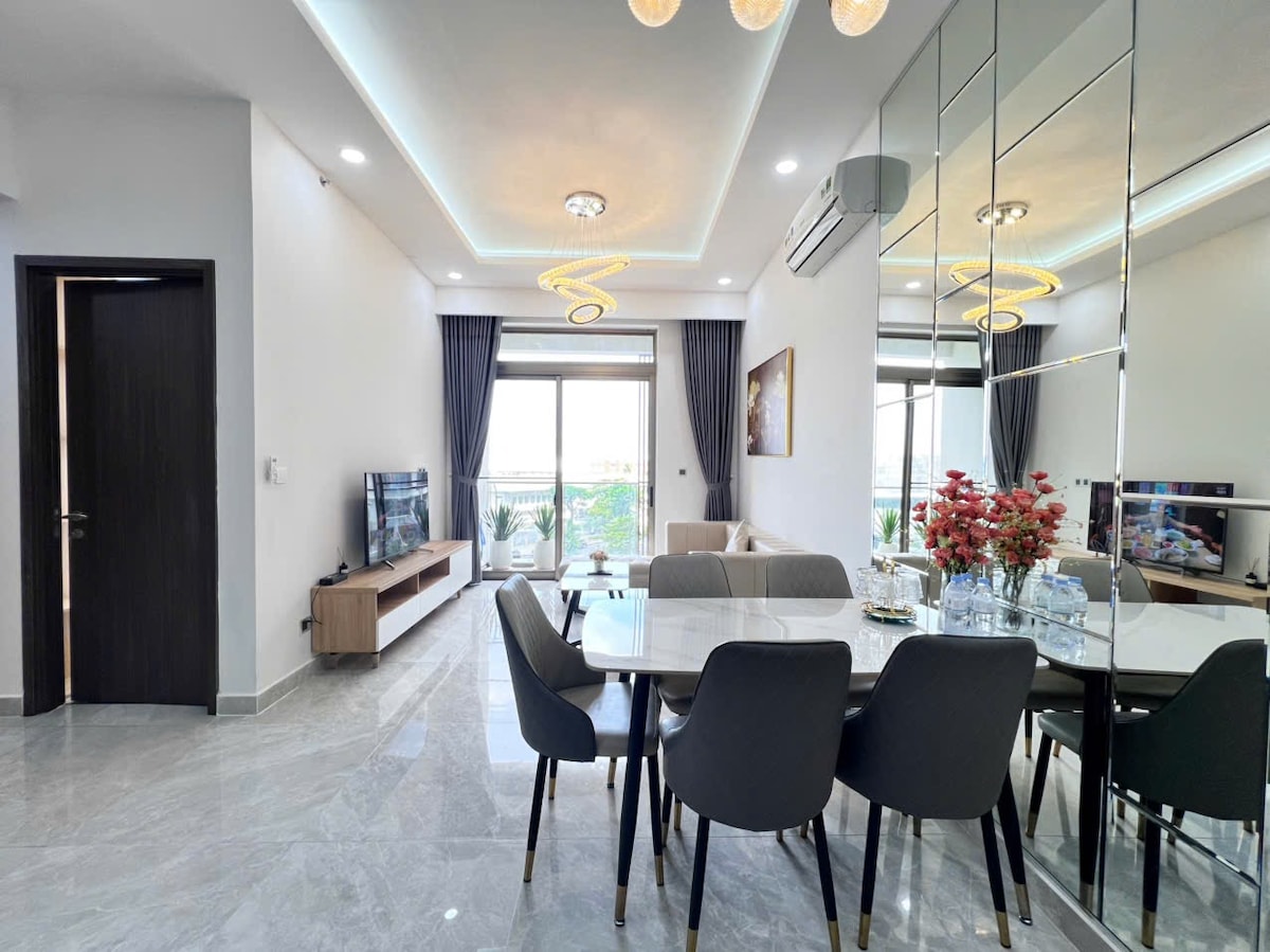 El departamento está ubicado en un edificio de departamentos de lujo River Panorama con piscina, sauna, área turística, vestíbulo verde abierto. 🏠El apartamento incluye: 1 amplia sala de estar con sofá, TV de 50-55 pulgadas con Netflix disponible 2 dormitorios con cómodos colchones de látex cubiertos con sábanas limpias 1 inodoro con calentador de agua indirecto, espejo, toallas 1 balcón con lavadora, vista panorámica del sinuoso río Saigón 1 cocina con estufa eléctrica, utensilios básicos de microondas, campana, mesa de comedor de 4 sillas