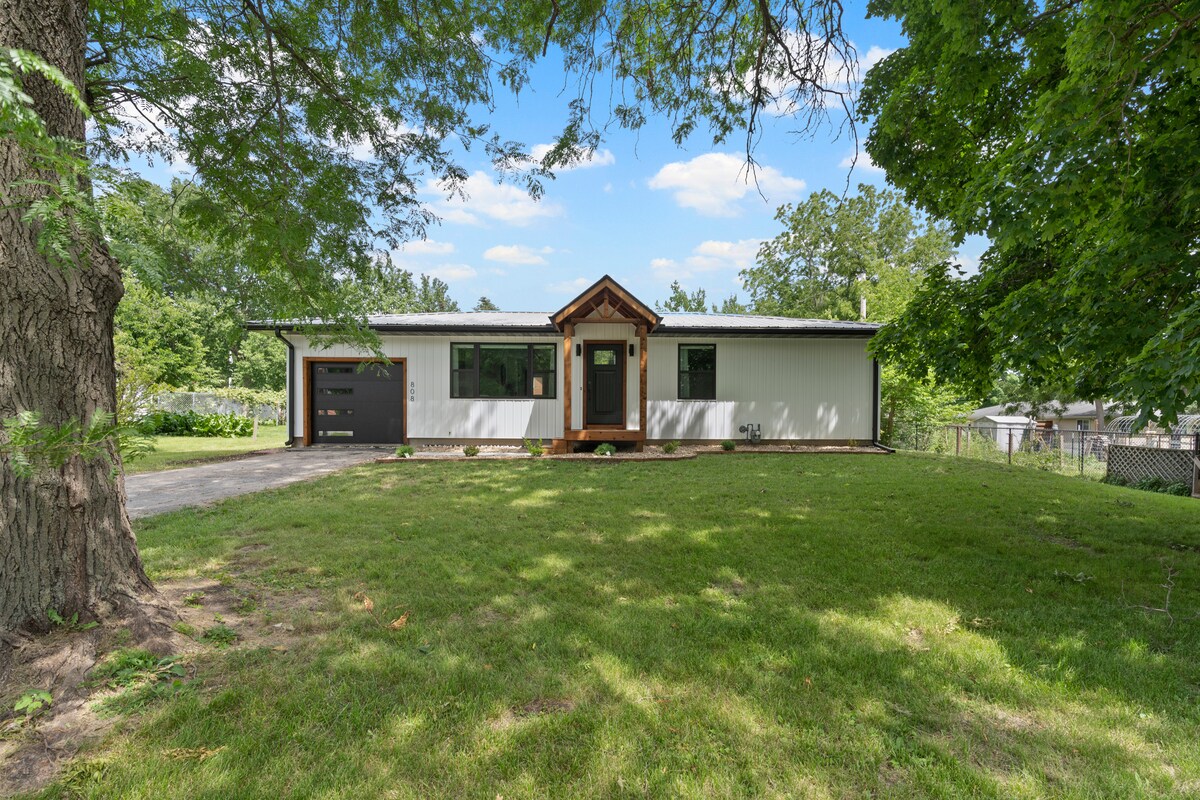 Nivel inferior moderno y completamente renovado en un barrio tranquilo y seguro. Cerca de parques, hospitales y clínicas de la Universidad de Illinois, Kinnick y Carver. Los huéspedes tienen su propio nivel inferior privado con entrada privada y registro. 1100 pies cuadrados de espacio. El dormitorio cuenta con una cama tamaño king. Dos áreas de estar incluyen: cama tamaño queen, televisor de pantalla plana grande y chimenea. La cocina americana completa recién remodelada cuenta con refrigerador/congelador, microondas, estufa, lavadora/secadora, barra de café y fregadero.