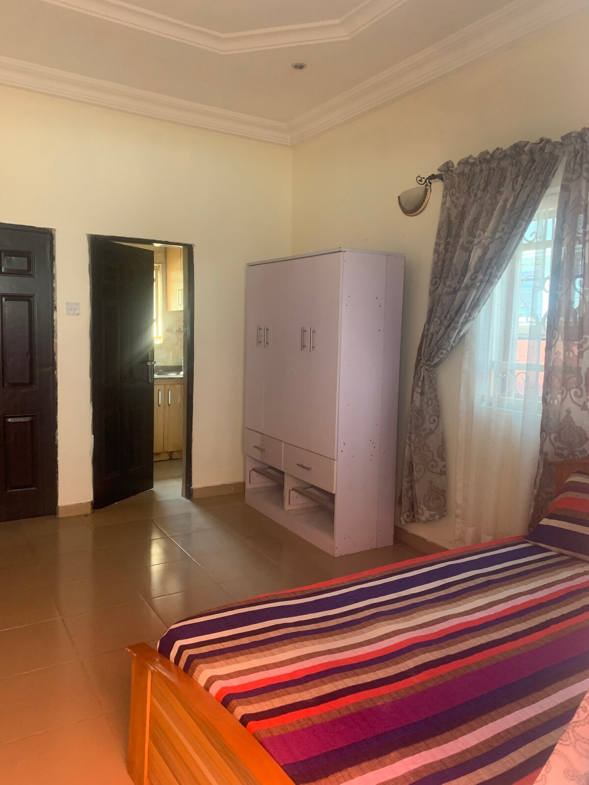 Bienvenido a Tomla Guest House, aquí en la ciudad de Benín, ¡tu hogar lejos de casa! Este elegante apartamento de 2 dormitorios construido en 2025, se encuentra en el corazón de Benin City, Sapele Road, junto a Limit Junction (Eriaria Quarters) A 15–20 minutos de Ring Road, Oba Palace y el aeropuerto. Características: Complejo cerrado y seguro con valla eléctrica Aire acondicionado con energía solar. Wifi Dormitorios con baño privado 2 baños, 3 inodoros Comedor Televisión inteligente con satélite DSTV Cocina totalmente equipada.