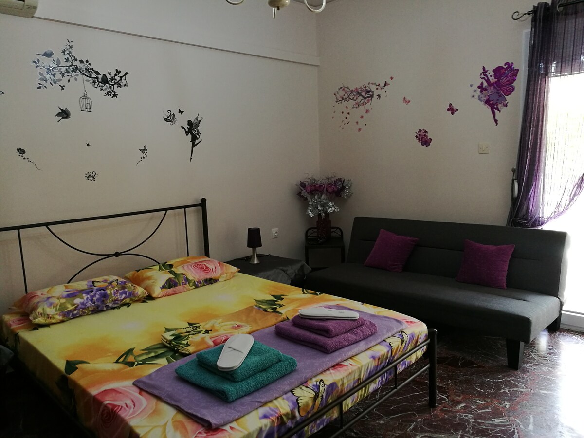 We welcome you to a beautiful apartment of 40 square metres in size,which we designed especially for you.It is located in a nice and quiet part of Heraklion,15 minutes walk from Four Lions Square,the shops and the (URL HIDDEN) car it is 10 minutes away from the airport,the port,the archaeological site of Knossos and the nearest beach.Just a few metres you find a super market,bakery,pharmachy,a bus and a taxi. Αριθμός Μητρώου Ακινήτου 00000094325