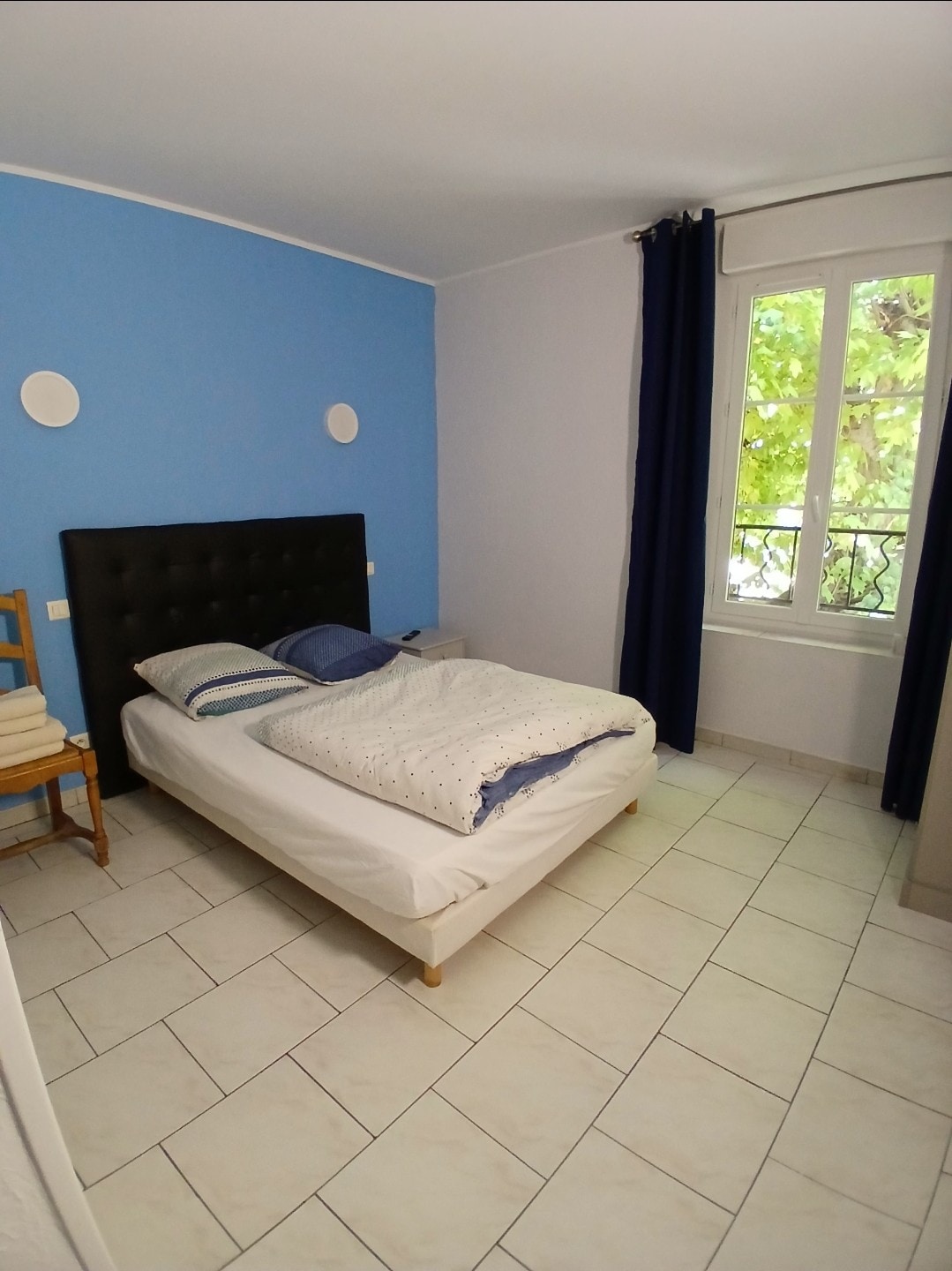Chambre spacieuse et lumineuse au Pont de Ners, équipée d’un grand lit confortable. Décor chaleureux et ambiance reposante, idéale pour un séjour détente au cœur d’un environnement calme et verdoyant.