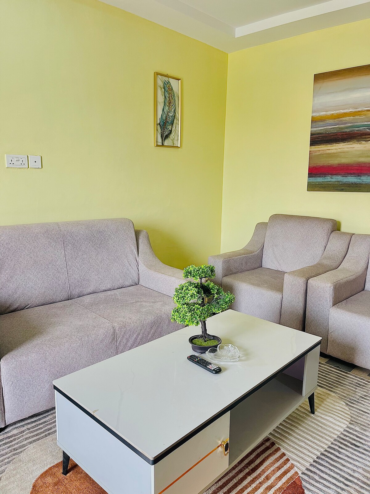 Enjoy a calm and comfortable stay in this cozy one-bedroom apartment with an en-suite bathroom, air-conditioned living room and bedroom, a fully equipped kitchen, private terrace, free parking, TVs in both rooms, and a washing machine. Located in a quiet neighborhood with easy access to shops and transport, the apartment is ideal for solo travellers and couples. A daily prepaid utility allowance of GHS 30 and 6 GB of internet are included. Any extra usage is at the guest’s expense. .