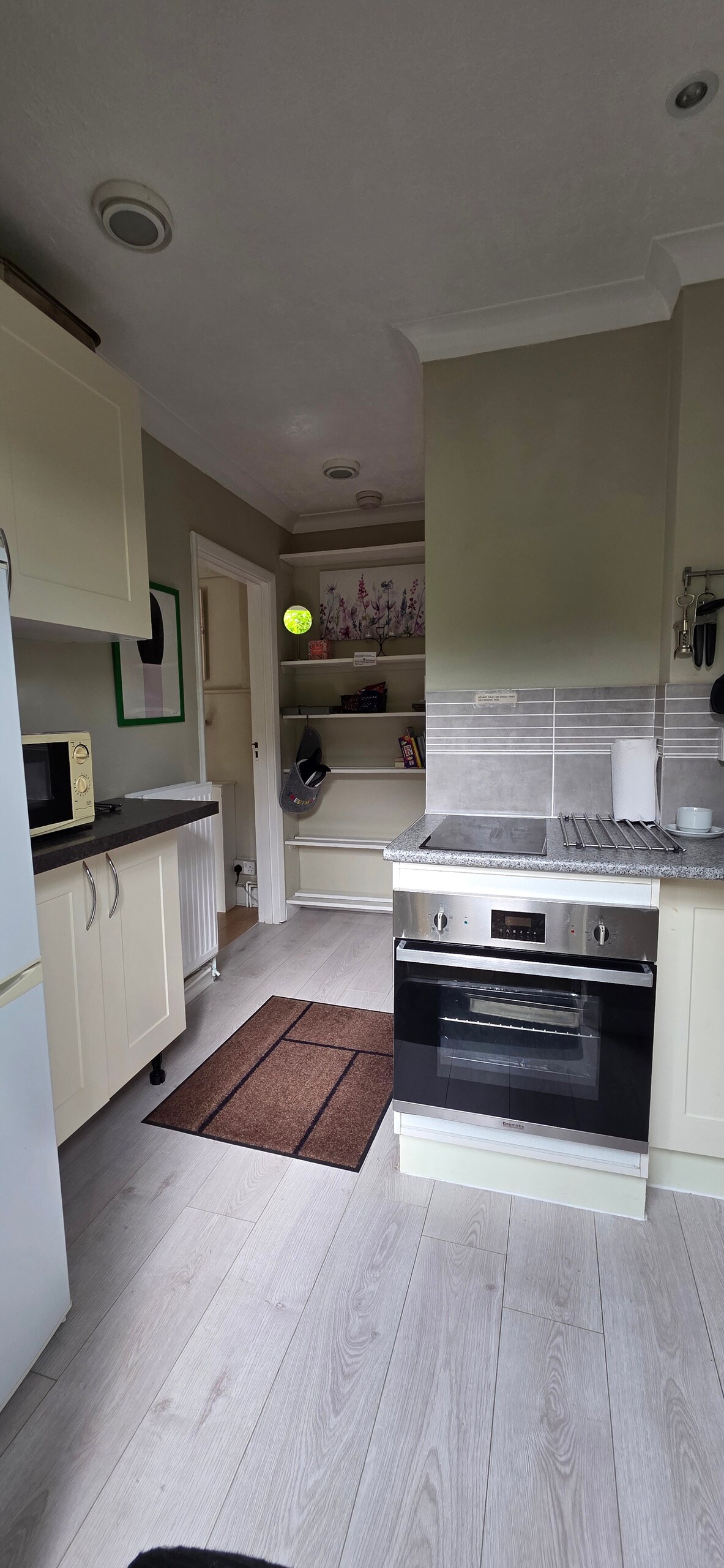 A beautifully converted chapel. Bright, spacious and lovely views from gallery, also a peaceful workspace. Wi-Fi. Pineapple Room with kingsize bed. Jungle Room twin beds or king. Lovely bathroom with shower over bath. Spacious family room with fully equipped kitchen, dining and lounge. Downstairs cloakroom. Designated onsite parking for one car. Enclosed garden ( access across car park through gate signed The Old Chapel Garden). Two housetrained dogs welcome, MUST book. No puppies.