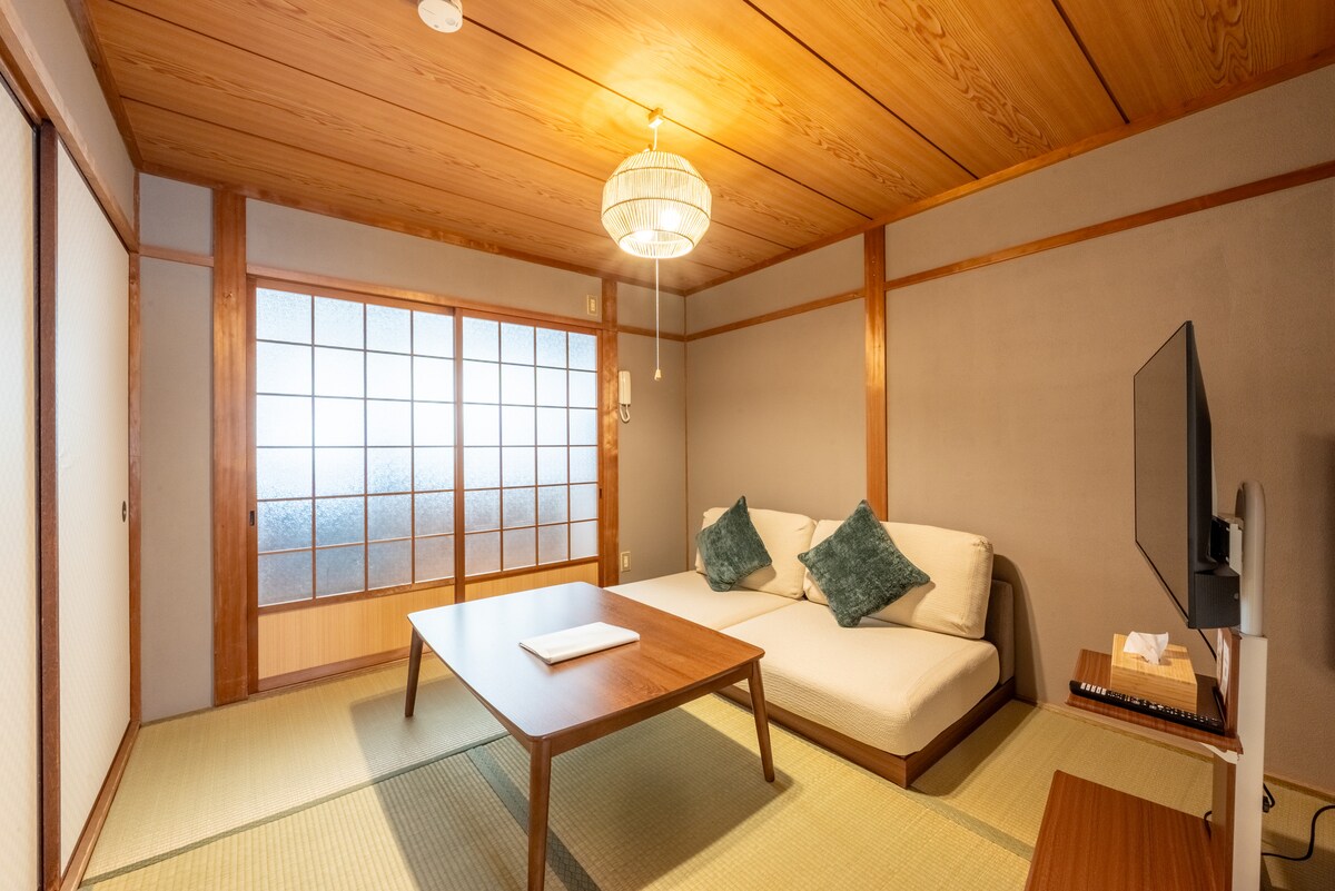 Ubicada en Joto Ward de Osaka, esta casa histórica de 1909 es un raro sobreviviente de la Segunda Guerra Mundial. Renovado en 2015 por un reconocido diseñador, abarca 150 !, mezclando el encanto histórico con el lujo moderno en un tranquilo refugio en el centro de la ciudad. Su elegante diseño armoniza el pasado y el presente, ofreciendo inmersión cultural y comodidad espaciosa. Con dos baños, inodoros separados, lavabos y un baño grande, garantiza privacidad y limpieza para grupos. Experimenta la cultura, la historia y la comodidad que te espera tu estancia perfecta en Osaka.