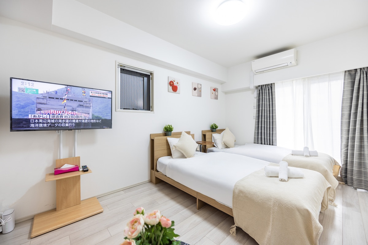 Estilo marino azul · Curación y relajación| Casa de té de 5 minutos| Acceso directo a la estación de Kansai| Ventilación y luz| 2 dormitorios + salón grande| Escritorio| Netflix